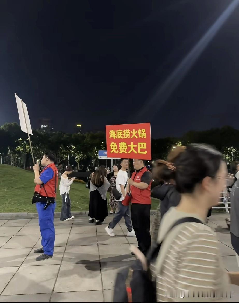 张杰演唱会!海底捞才是赢家! 张杰演唱会还没开唱,场外已经被海底捞和巴奴的“免费接送战”点燃!红色的海底捞大巴牌在人群里晃,蓝色的巴奴接车旗在夜色中闪,跟演唱会应援似的,这排面绝了! 打工人看完演唱会,本来累瘫,结果被火锅巨头直接“拐”去搓一顿,这谁顶得住?网友狂喊:“这才是演唱会隐藏福利天花板!” 可回头一想,这免费大巴到底是宠粉还是内卷?要是所有商家都这么卷,我们打工人的钱包和体重,到底该站哪边? 海底捞超大鸳鸯锅自热火锅清油麻辣免煮户外朋友聚餐大份