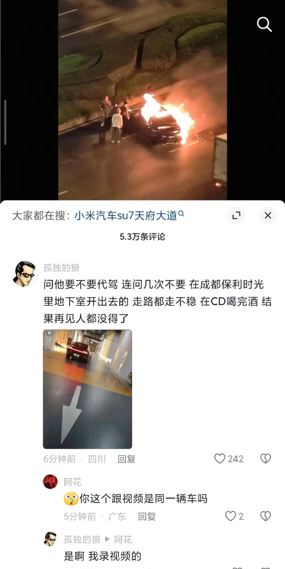 成都酒驾飙车。 据说车外无法开门,车主已经s亡了。很多人问我为啥不买电车,我都说家里就这一辆车,还是买油车好一点。其实是有一次消防来宣讲,说某个电车起火后车门打不开,人在里面,火一直烧。的确把我吓到了。