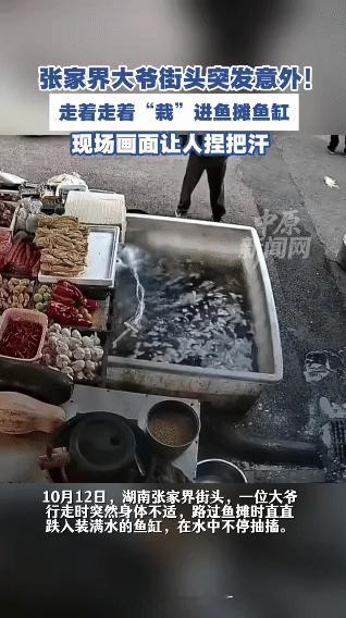 张家界大爷,街头突然栽进鱼摊水缸!看完这画面,瞬间想到自己爸妈,真觉得揪心!