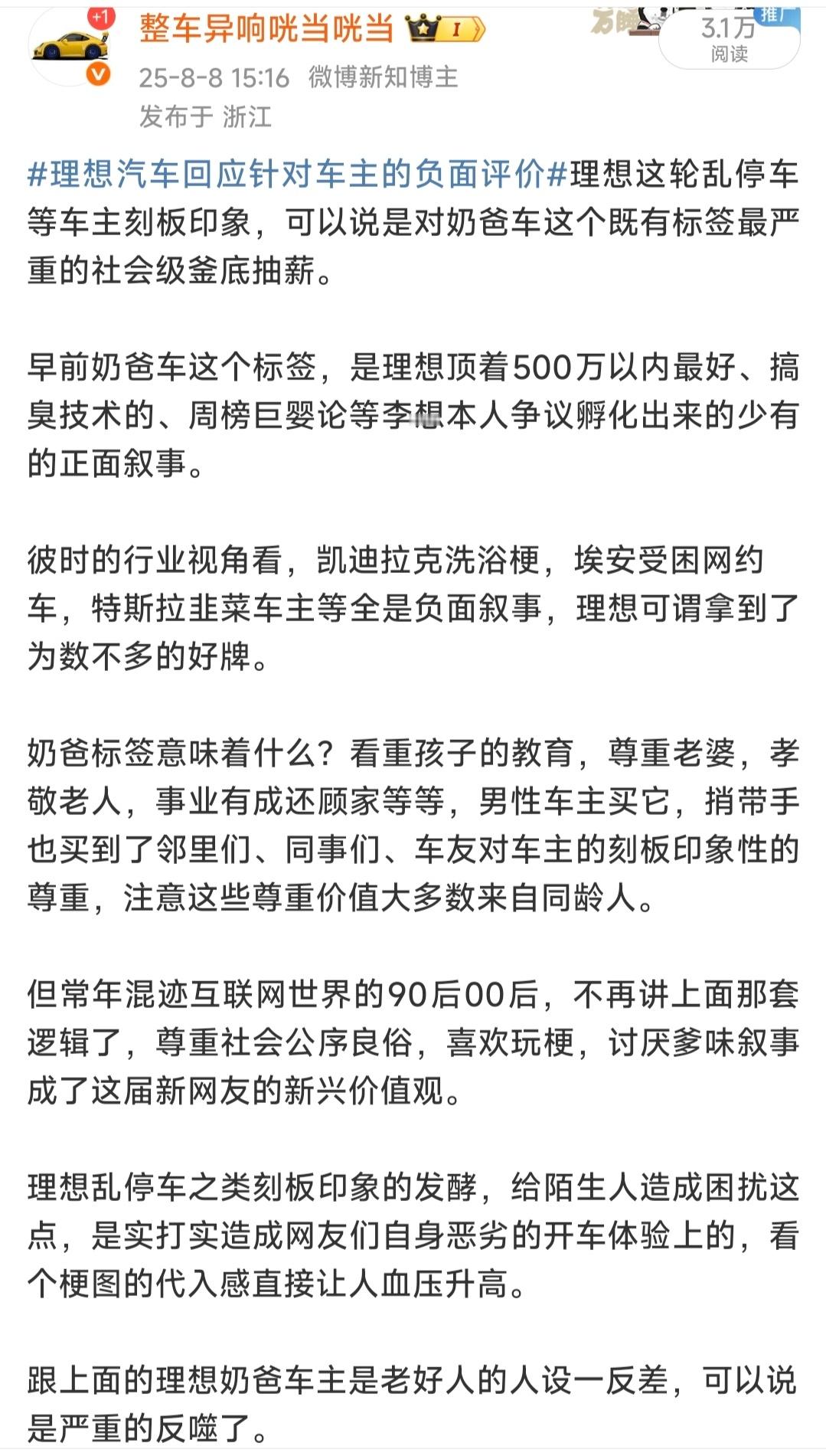 就像理想乱停车刻板印象舆情的发酵,劝退了很多消费者一样,买贵车的消费者是在意别人异样眼光的,所以这次车祸绝不止甩锅给车主严重超速就结束了。
