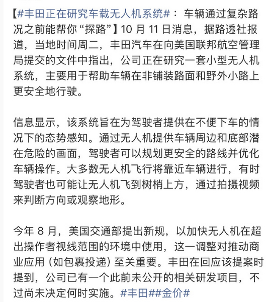 车载无人机还成了趋势了朋友们?然后看看这个报道所述,也是为了拿无人机去探路,或者