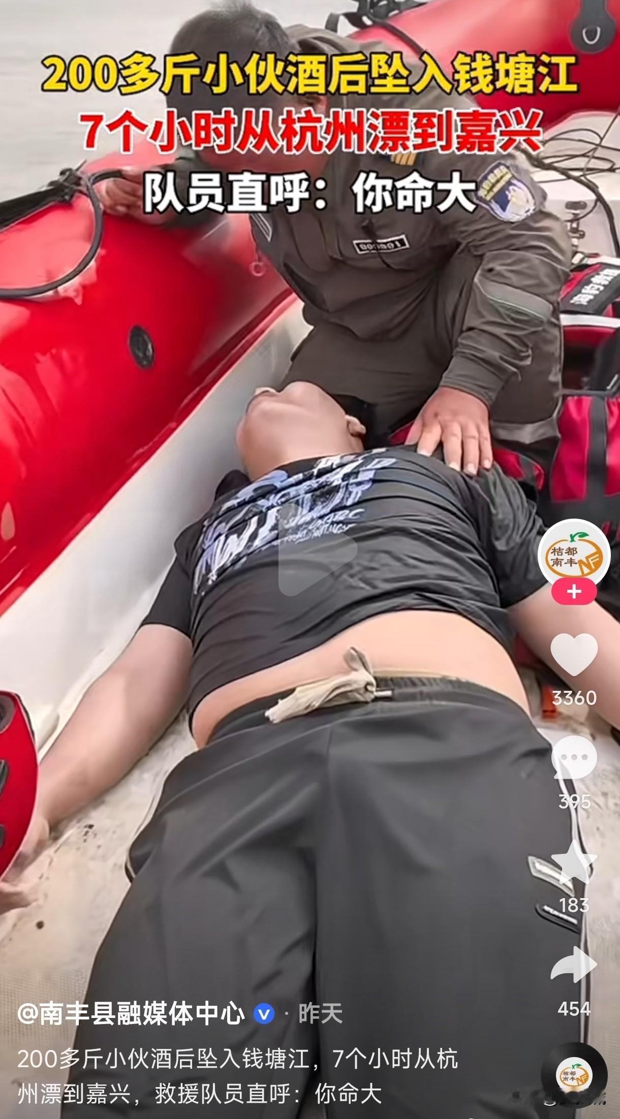 《肥而不溺》成语的由来 200多斤小伙酒后坠入钱塘江,历经7个小时从杭州漂到嘉兴