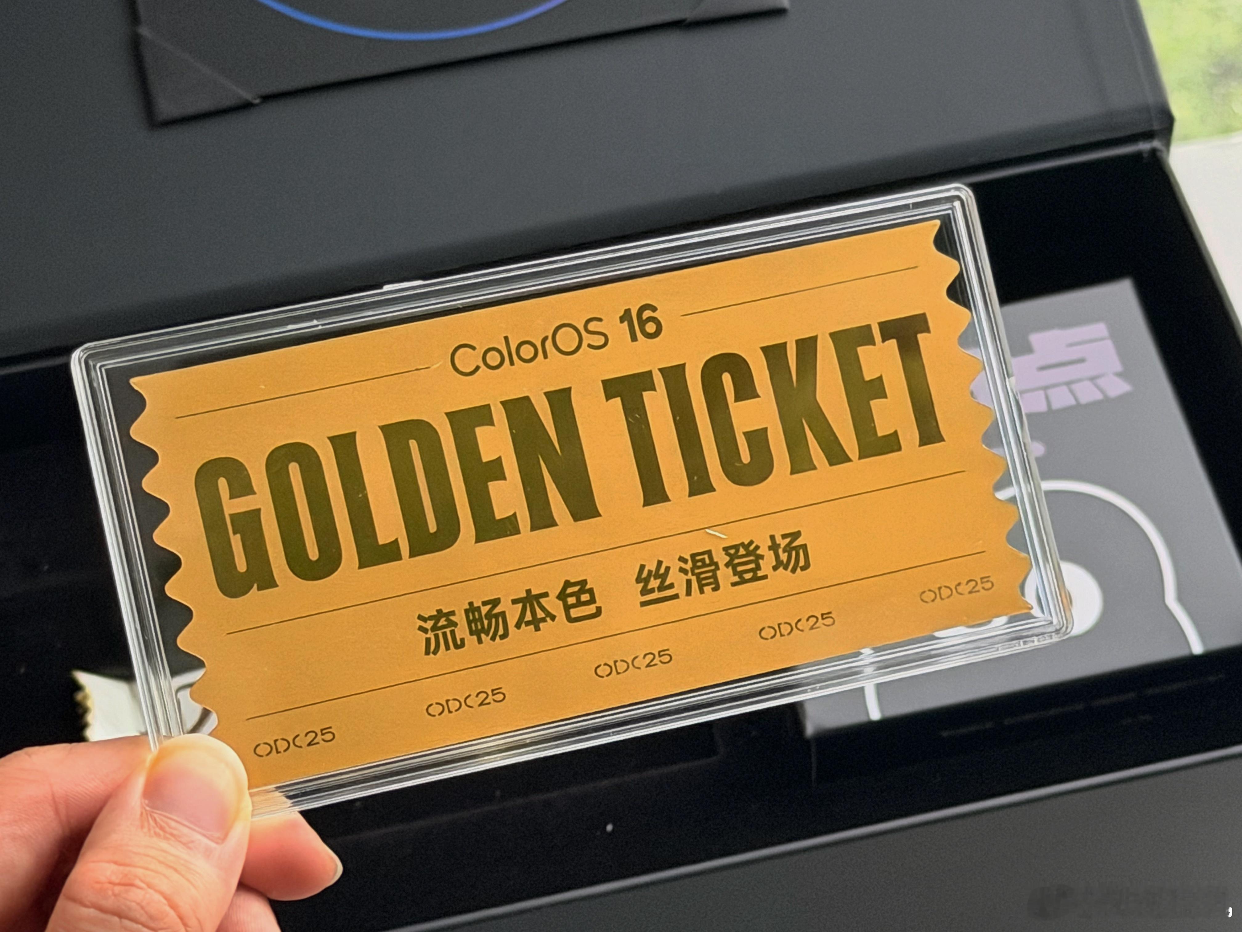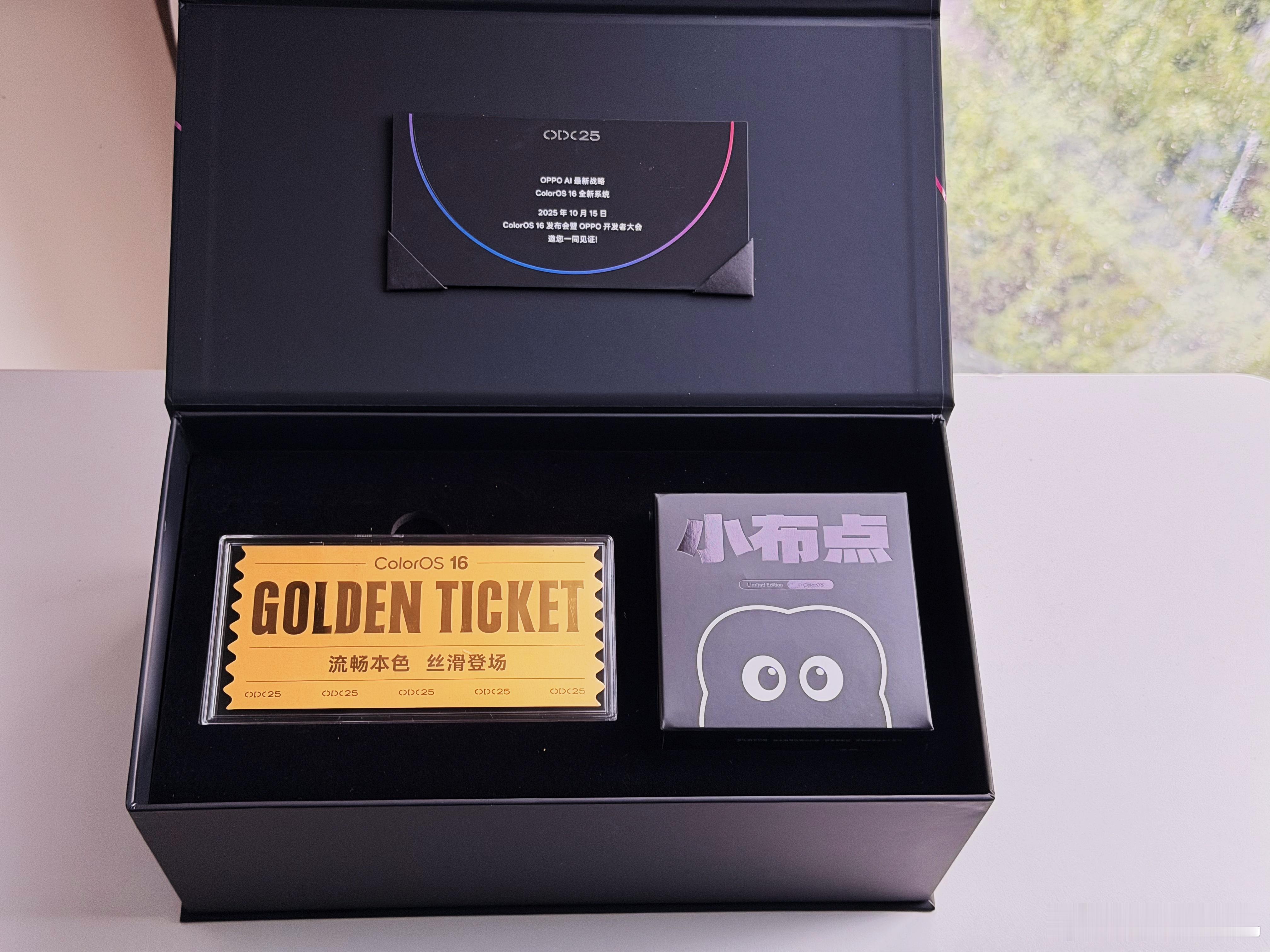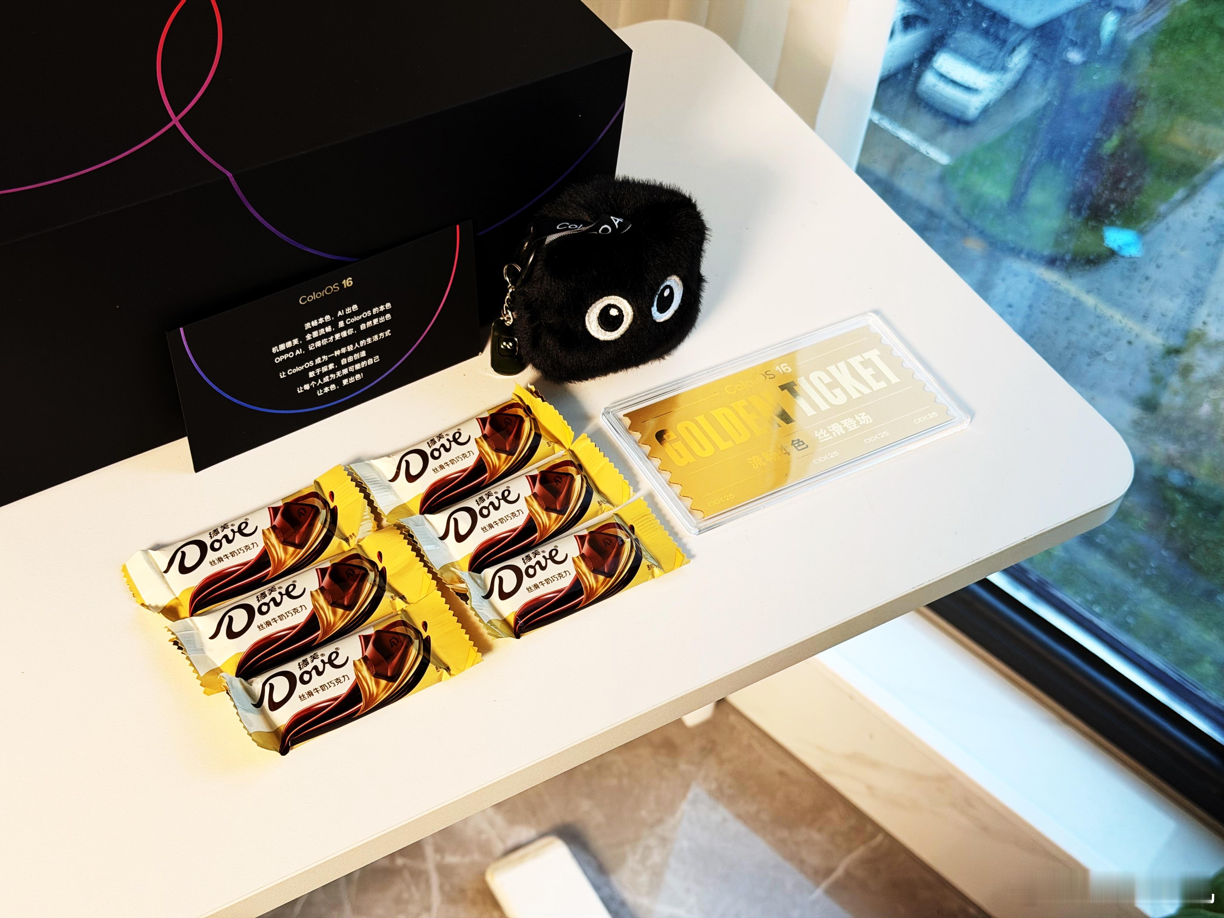 今年 ODC 的邀请函挺有意思 分别是一张定制纪念金票和几块德芙巧克力,以及一个专属的 OPPO 小布点挂饰。