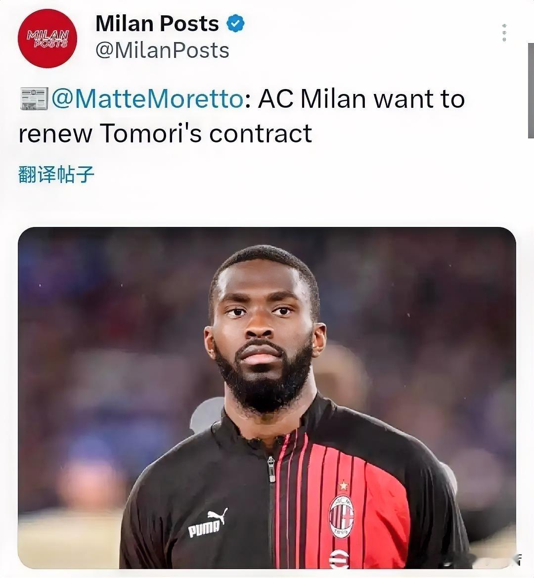 米兰希望与托莫里完成续约。米兰与托莫里的团队已经开始就续约进行谈判,拟议的新合同