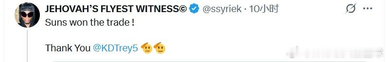 网友配文道:“这笔交易是太阳赢了,谢谢你杜兰特🫡🫡”