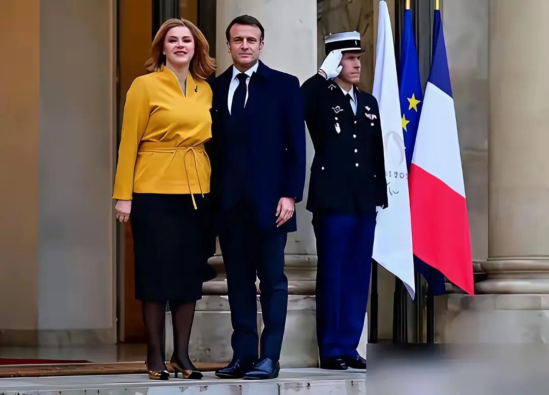 马克龙迎接拉脱维亚美女总理,不知是马克龙身高本就不高,还是美女总理身材高挑,总之,二人并肩而立时,身高相差无几。这张照片里,最让我忍俊不禁的是旁边敬礼的士兵,他竟没有面向两位官员,而是将脸转向了别处,真让人摸不着头脑,不知他是在向谁敬礼。
