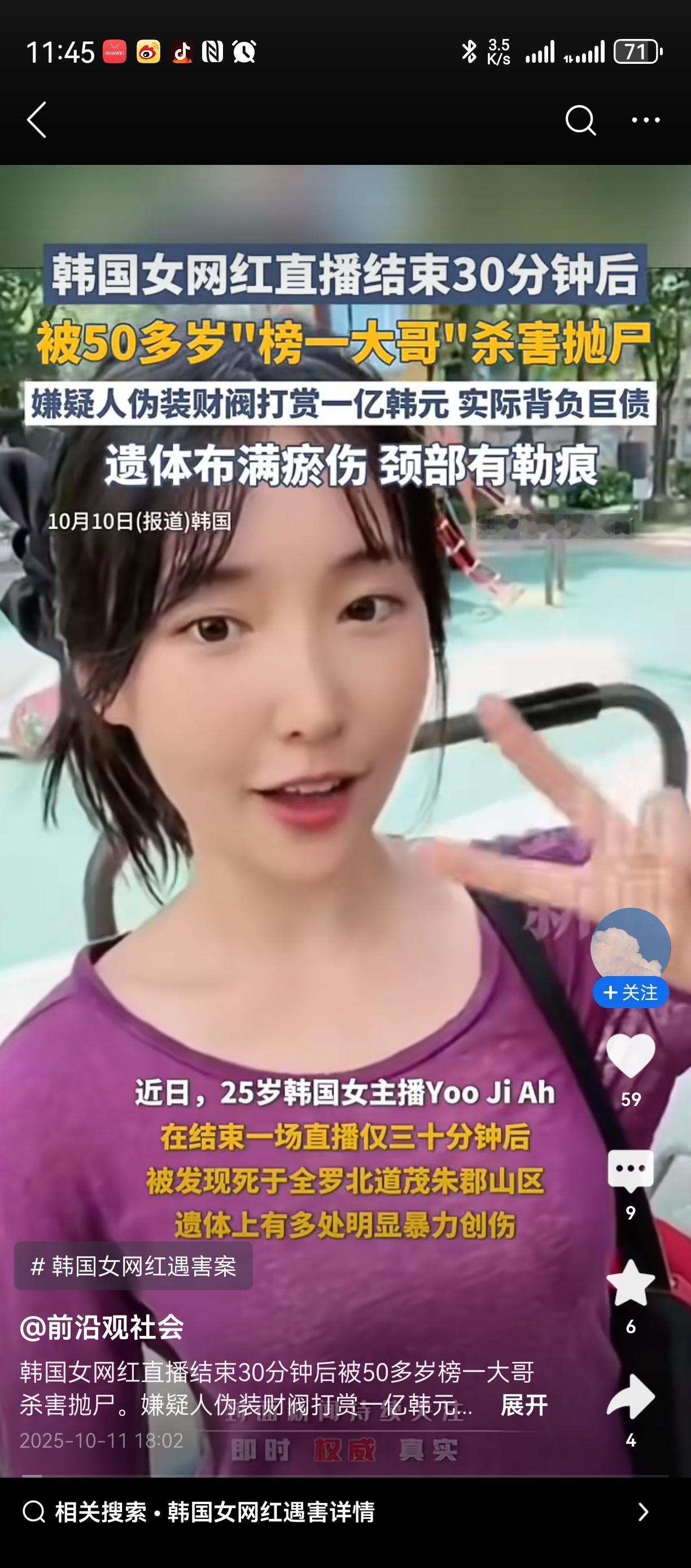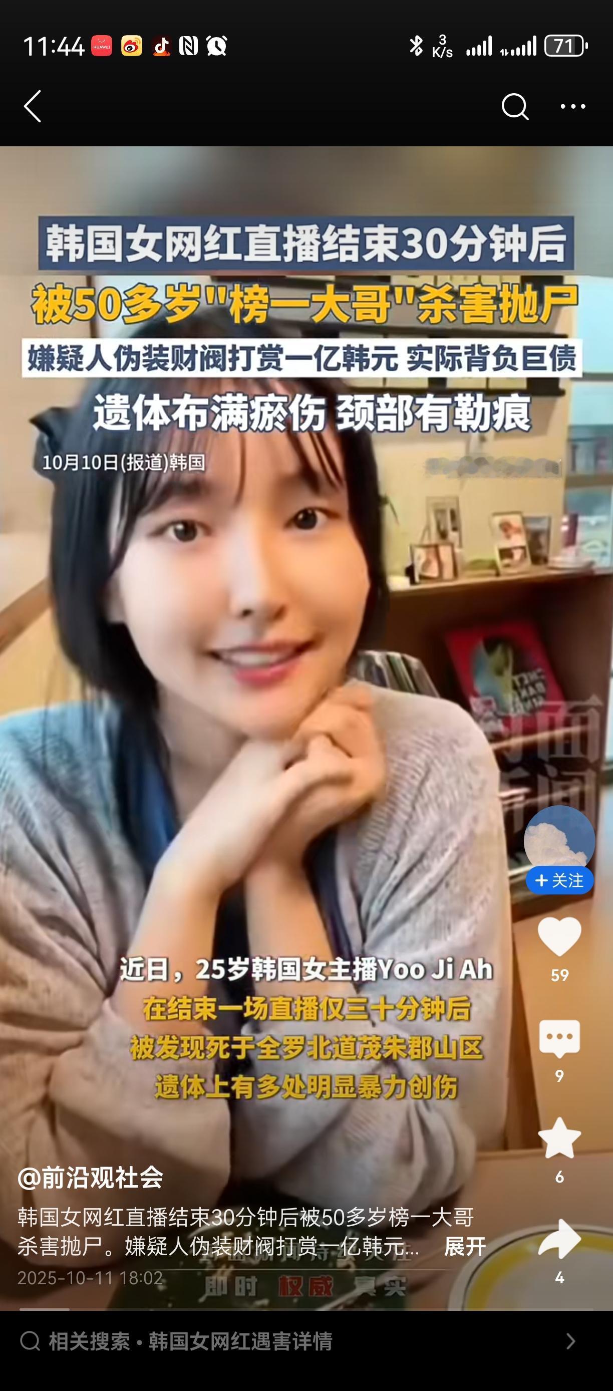 你要他钱, 他要你命钱都去那儿了 网红美女命也薄, 青春年少还美貌, 确被五旬