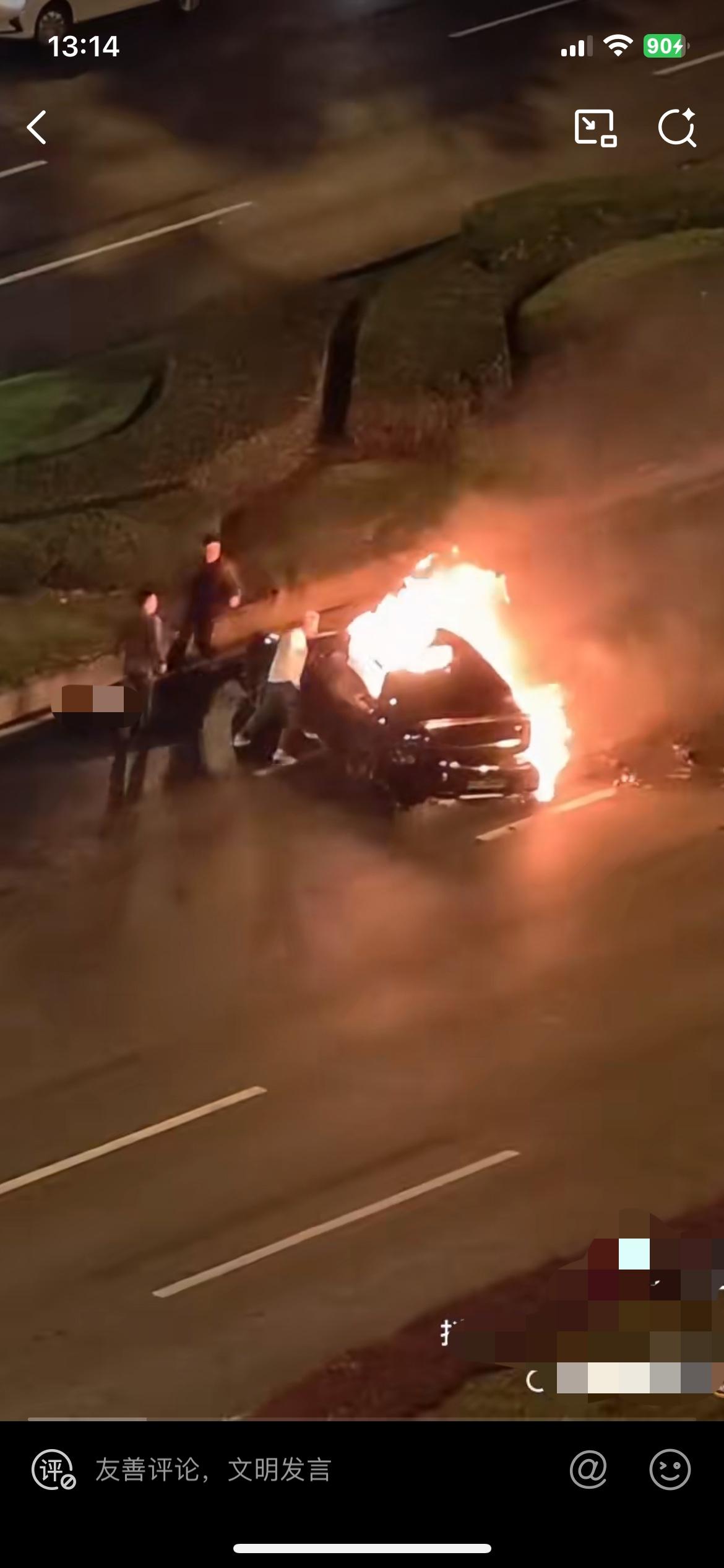 看到视频,几个壮汉在外面使劲拉门把手都没有办法把这个车门打开,然后他们砸玻璃也没有砸烂,有照片显示一位大哥的手都在滴血,那是他在砸玻璃时弄伤的,可见他是多么用力的在救人了,可惜的是最终因为火势太大而车门打不开而救援失败,眼睁睁的看着车主葬身火海,不知道车里面的司机是因为撞击被震晕了还是受伤了开不了门,就这样活活被大火吞噬了,这样子真是太痛苦了! 如果司机是清醒着的,在车里面开门,不管是用电子还是机械的方式,总有办法能打开门的,只要打开了车门,外面几个人马上就可以把他救出来的,但是车里面落锁后,想从外面打开门太难了,短时间内没有趁手的工具来破门或者砸烂玻璃,火大了,谁也没有办法救了。 总之,不管是传统燃油车还是新能源车,车辆做的多智能多豪华,行车安全还是应该放在第一位的。