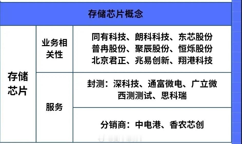 聚焦存储芯片,从业务相关性(如同有科技、朗科科技等)和服务(封测:深科技、通富微电等;分销商:中电港、香农芯创等)两方面进行梳理。