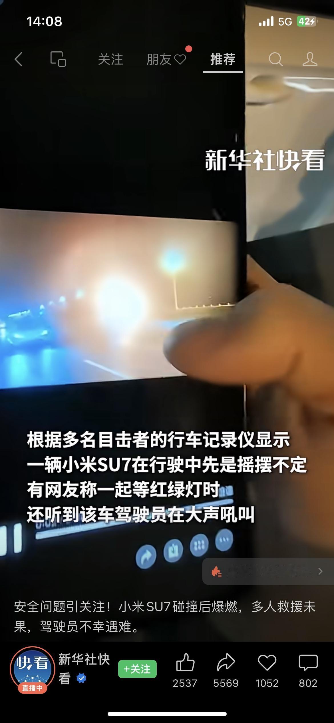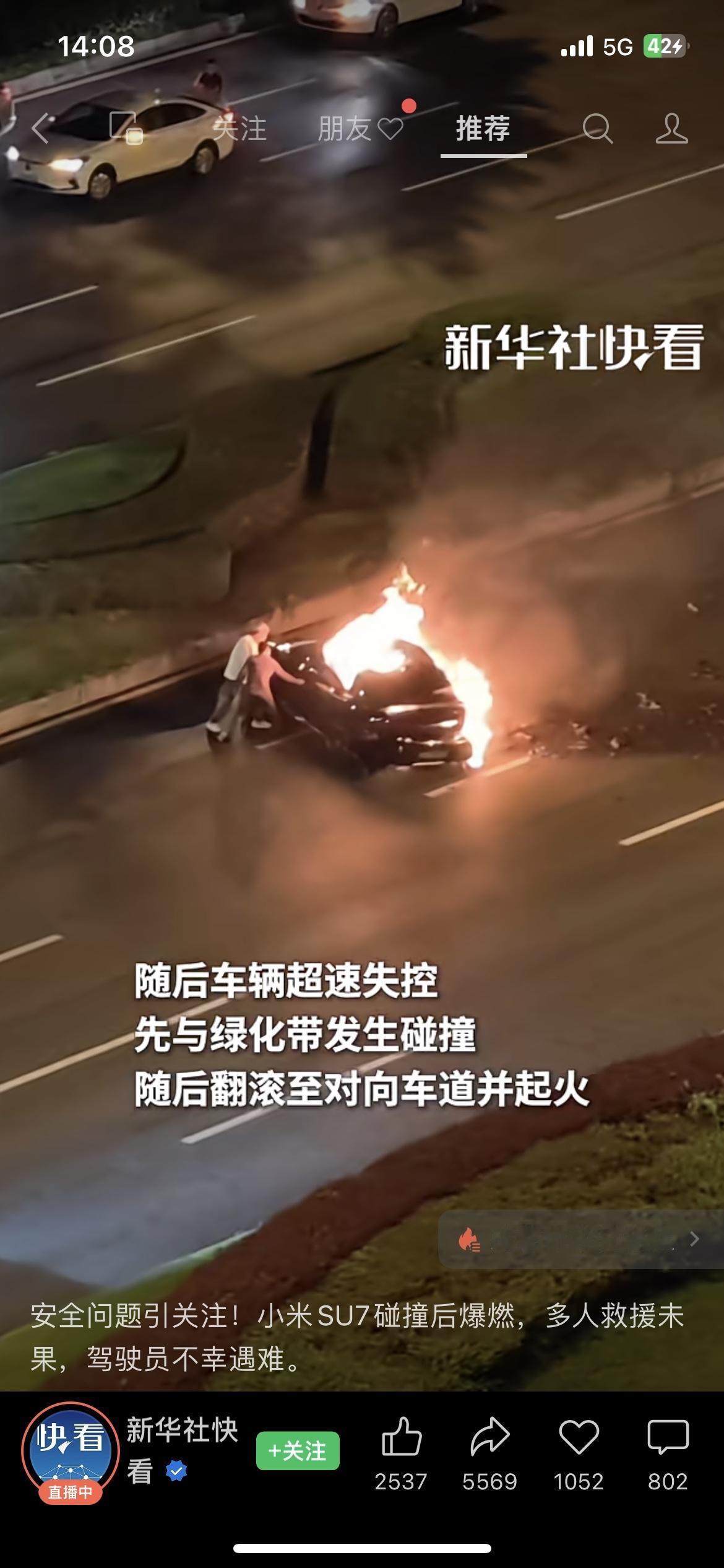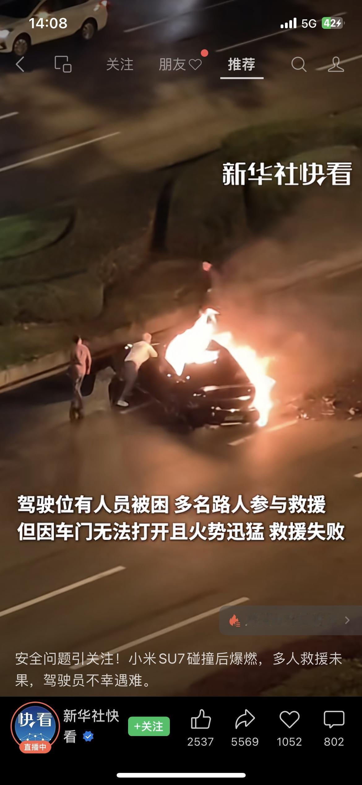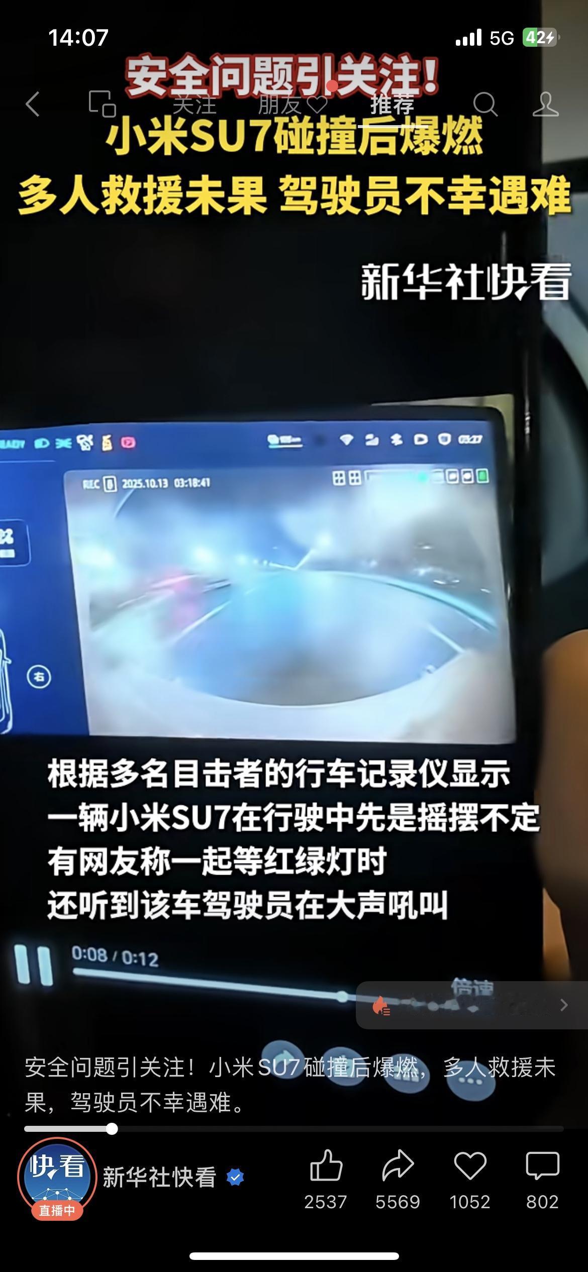 小米SU7碰撞爆燃驾驶员遇难!车门锁死、股价暴跌7%,新能源车还敢买吗? 家人们,成都这起小米SU7事故也太吓人了!车辆碰撞后直接爆燃,路人拼命想砸开车门救人却根本打不开,最后驾驶员不幸遇难,小米股价还暴跌近7%!这事儿你怎么看? 咱就说,小米SU7销量都破25.8万辆了,结果出这么大的安全事故,车门锁死这操作谁能接受?之前小米回应“断轴”说是超速,这次又来个车门打不开,到底是车的问题还是驾驶原因?现在新能源车是卖得越来越火,但安全配置要是跟不上,谁敢放心开啊? 我就纳闷了,同样是新能源车,极氪都能做到“零自燃”还通过新国标认证,小米这安全设计咋就这么拉胯?咱买车图的是方便,不是买个“移动定时炸弹”吧? 你们觉得这事儿是小米车的设计缺陷,还是驾驶员操作有问题?以后还敢不敢买新能源车了?评论区聊聊,也让更多人看看新能源车的安全底线到底在哪!小米汽车SU7 su7小米汽车 su7小米事故
