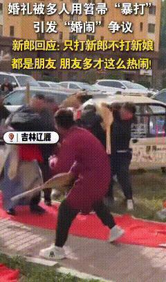 吉林辽源一场婚礼上,十几个人手持扫把追打新郎。新郎头部蒙着衣服,慌不择路地四处奔逃。 有人将这一视频发布到网上, 有网友指责这种“婚闹”行为太过分。 有网友说:一个愿打一个愿挨,有的人净操没用的心。 新郎赶忙站出来解释:“这些都是我的朋友,和我年纪相仿,都二十来岁,就是闹着玩儿。在我们东北,朋友多才能闹到这种程度。” 接着,新郎又补充道:“扫把是经过改造的,打在身上没你们想得那么疼,但还是有点疼的。他们不会去打新娘,只针对我。” 我认为,真正的好朋友是要帮着维护婚礼秩序,而非手持扫把追打,这是不文明,或是越界的行为。 婚礼意味着两个年轻人组建新家庭,需要的是喜庆氛围与美好祝福。 而“婚闹”是一种陋习,希望这样的陋习不要再延续下去。 来源:第一现场