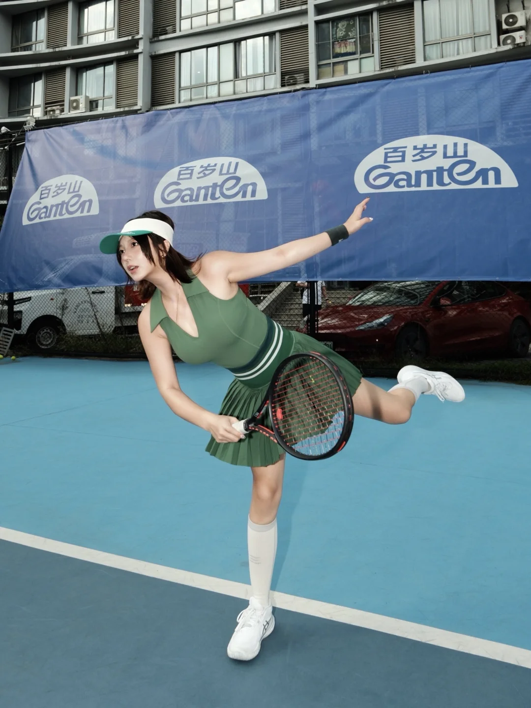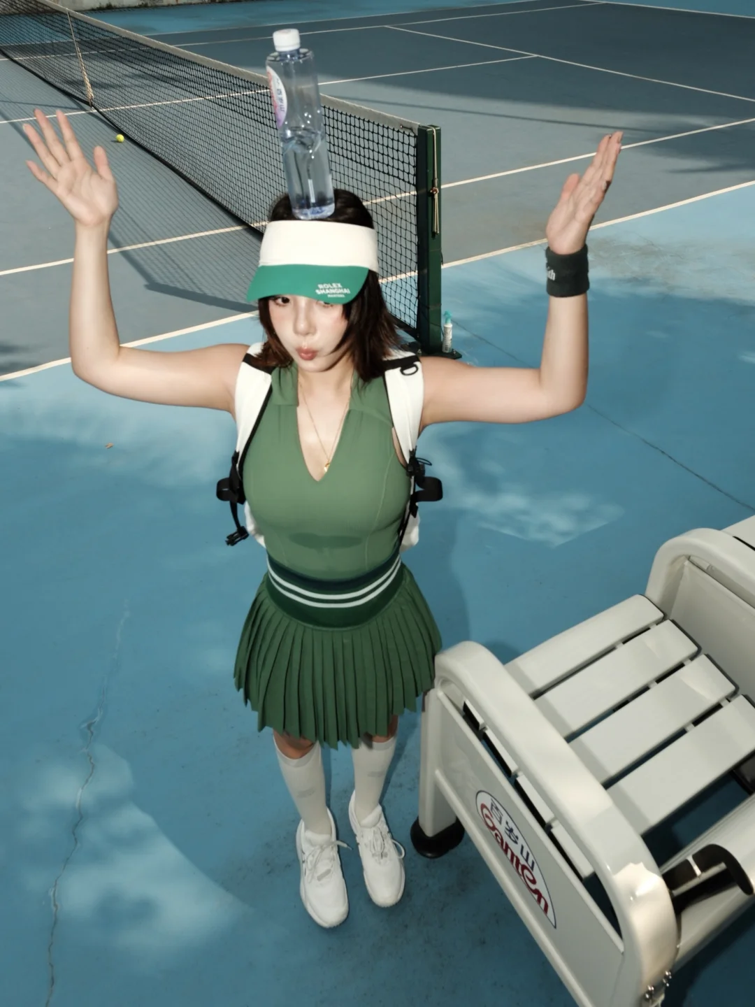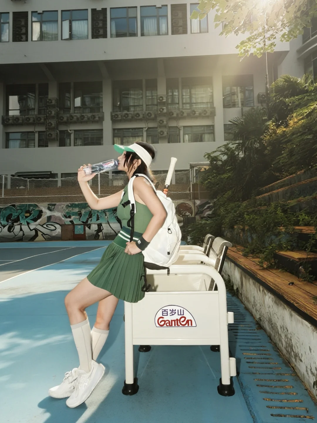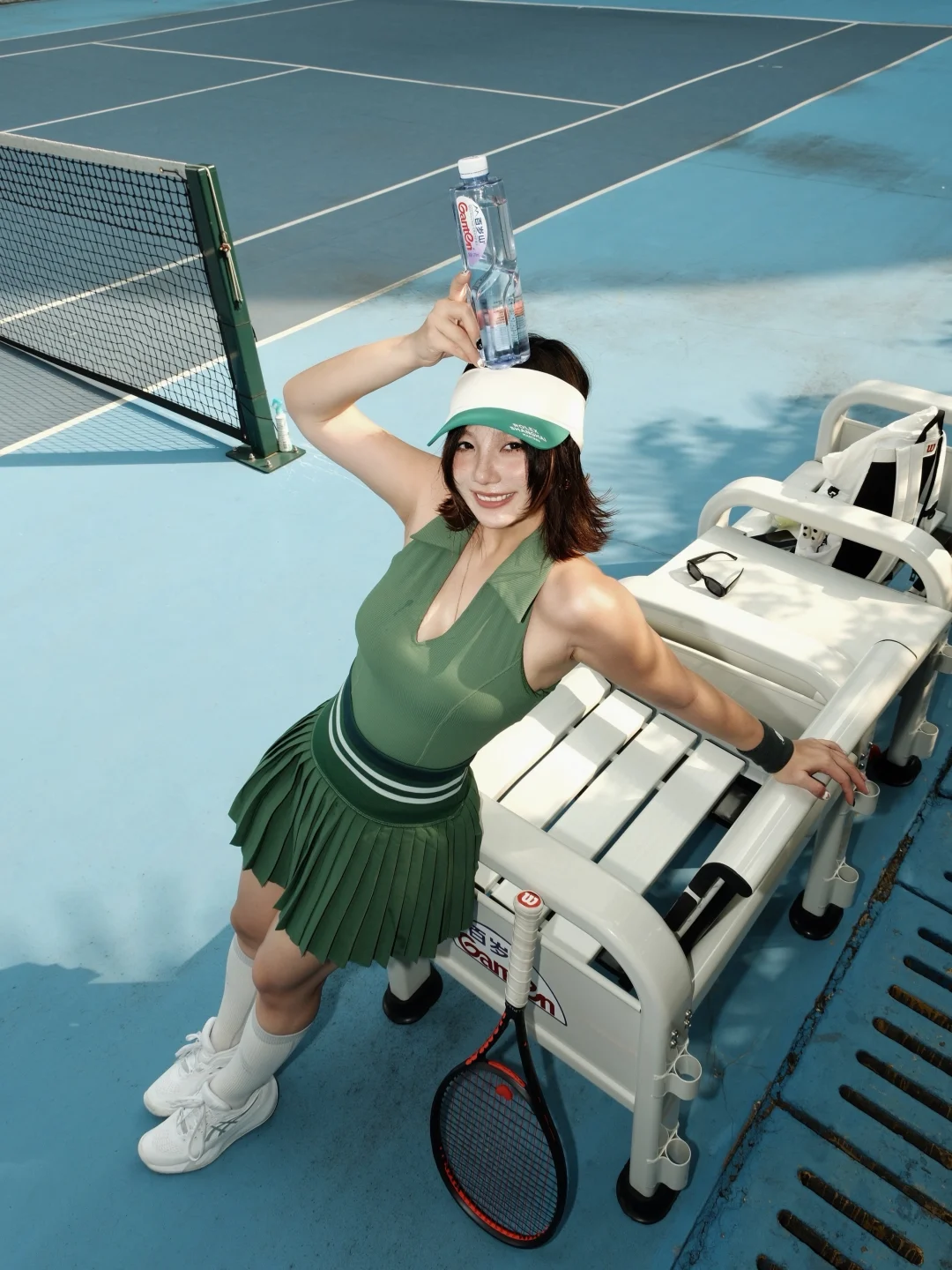 场地真的太有内味儿了!浓厚的蓝色氛围感,配上赛事同款指定饮用水,瞬间穿越回旗忠网球中心的赛场。抱着复刻神仙击球的执念上场,每一次挥拍都像在跟偶像隔空对练,暴汗两小时也完全不觉得累——毕竟运动后吨吨灌百岁山,补充水分和矿物质的速度比想象中还快。