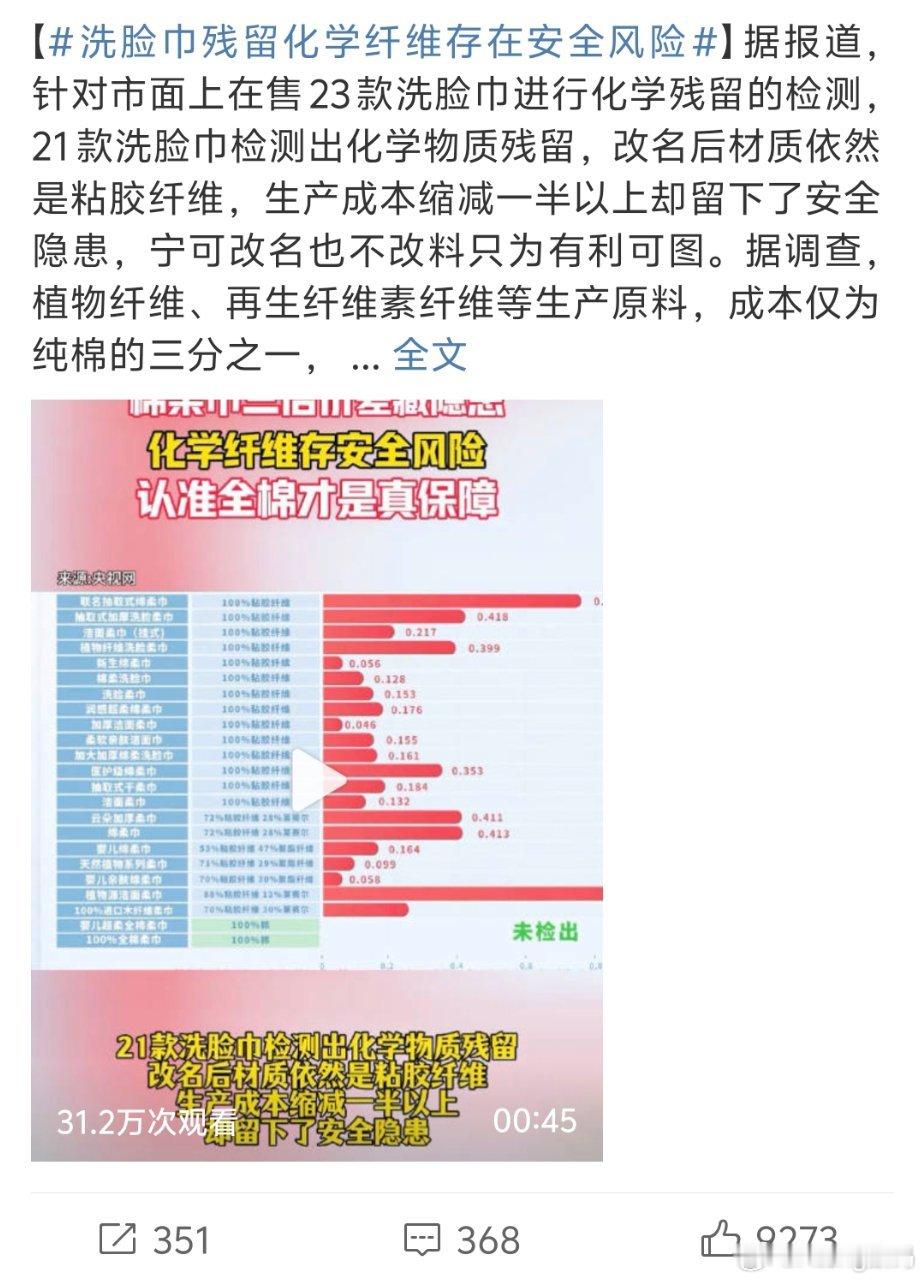 洗脸巾残留化学纤维存在安全风险以前说纸巾有漂白剂改用洗脸巾现在洗脸巾有化学纤维了