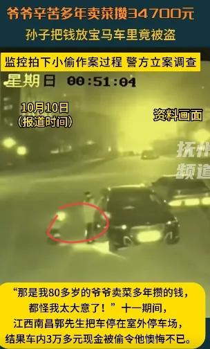 严查到底!”10月5日,江西南昌,一男子开车回家看望爷爷,80多岁的爷爷让他把30000多元现金存到银行,谁知还没来得及去存钱,就被两个小偷把车门撬开,偷走了里面的现金!男子现在既不敢告诉爷爷,又希望能尽快破案! 这事儿看完真能把人急死!你说这小伙子多倒霉,好心回家看爷爷,还帮老人跑腿办正事,结果钱没存成,全让小偷给端了! 这三万多块钱,对咱们年轻人来说都不是小数,更别说对一个80多岁的老人了!指不定是爷爷省吃俭用攒了多少年的养老钱,平时舍不得吃舍不得穿,一分一毛抠出来的,就盼着存银行里心里踏实,结果全让俩毛贼给偷了去! 你说这小偷也真缺德,专挑这种老百姓的血汗钱下手!人家车门锁得好好的,愣是给撬开了,一看就是惯犯,说不定早就盯着这一片了,专挑过节大家回家带现金的时候动手,真是坏到骨子里了! 小伙子现在估计肠子都悔青了,一边是不敢跟爷爷说,怕老人受不了刺激,毕竟这么大年纪了,万一急出个好歹可咋整;一边又急得团团转,天天盼着警察能赶紧把小偷抓住,把钱追回来。换谁碰到这事儿都得崩溃,一边是孝心,一边是现实,两头都难办! 说实话,现在虽然都用手机支付,但老一辈人还是习惯把钱揣在手里、放在身边才放心,总觉得现金攥着才踏实。这也给了小偷可乘之机,尤其是过节前后,大家出门带的现金多,千万得注意,车门一定要锁好,贵重物品别往车里放,哪怕就离开一会儿也不行,小偷下手快得很! 希望警察同志能赶紧把这俩小偷揪出来,不光要把钱追回来还给人家,还得好好治治这种歪风邪气,让他们知道偷老百姓的养老钱,后果有多严重!也提醒大伙儿,不管啥时候,保管好自己的财物,别给小偷留机会! 各位读者你们怎么看?欢迎在评论区讨论。盗窃 偷东西 南昌小偷