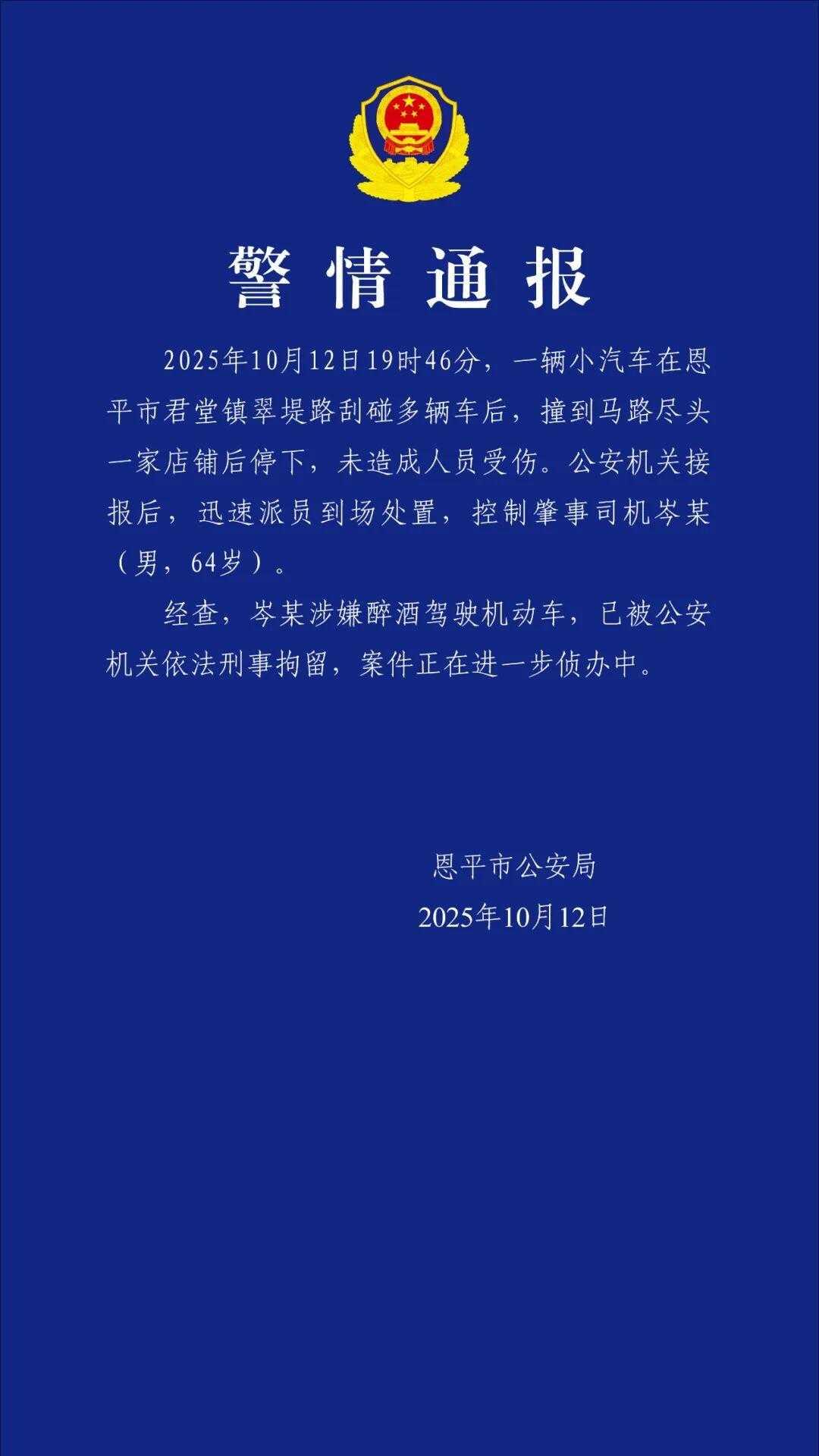 震惊!64岁老人醉驾小汽车连撞多车,这是在玩命还是无知? 醉驾,从来都不是一件小事,而64岁的岑某醉驾更是让人揪心。对于很多人来说,64岁本应是安享晚年,做事更加沉稳、谨慎的年纪,可岑某却做出了醉驾这种极度危险的行为。 在生活中,有不少类似的案例。比如有的老人觉得自己酒量好,喝点酒开车没问题,结果却引发了严重的交通事故,给自己和他人都带来了巨大的伤害。还有的老人心存侥幸,认为这么大年纪了,交警可能不会查,或者出了事也会从轻处理,就放纵了自己的行为。 岑某的这种行为,首先是对自己生命安全的极度不负责任。随着年龄的增长,身体的各项机能本就有所下降,反应速度变慢,判断力也不如年轻人,醉酒后开车,发生事故的风险更是成倍增加,很可能一个小失误就会让自己陷入绝境。 更重要的是,他这是对他人生命和财产安全的漠视。道路是公共空间,行人、其他车辆都在正常通行,他醉驾开着车横冲直撞,刮碰多辆车,还撞到店铺,一旦造成人员伤亡,那将是几个家庭的悲剧,给别人带来的痛苦和损失是无法估量的。 从社会层面来看,这种行为还扰乱了正常的交通秩序,影响了城市的安全与稳定,让大家对道路安全产生担忧。 要杜绝此类现象,一方面,社会要加强对交通安全法规的宣传,尤其是针对老年人,要采用更通俗易懂的方式,让他们明白醉驾的危害和后果。另一方面,执法部门也应加大监管和打击力度,不能因为是老人就放松要求,只有让违法者付出应有的代价,才能起到警示作用,让大家真正敬畏法律,遵守交通规则,共同营造一个安全、有序的交通环境。