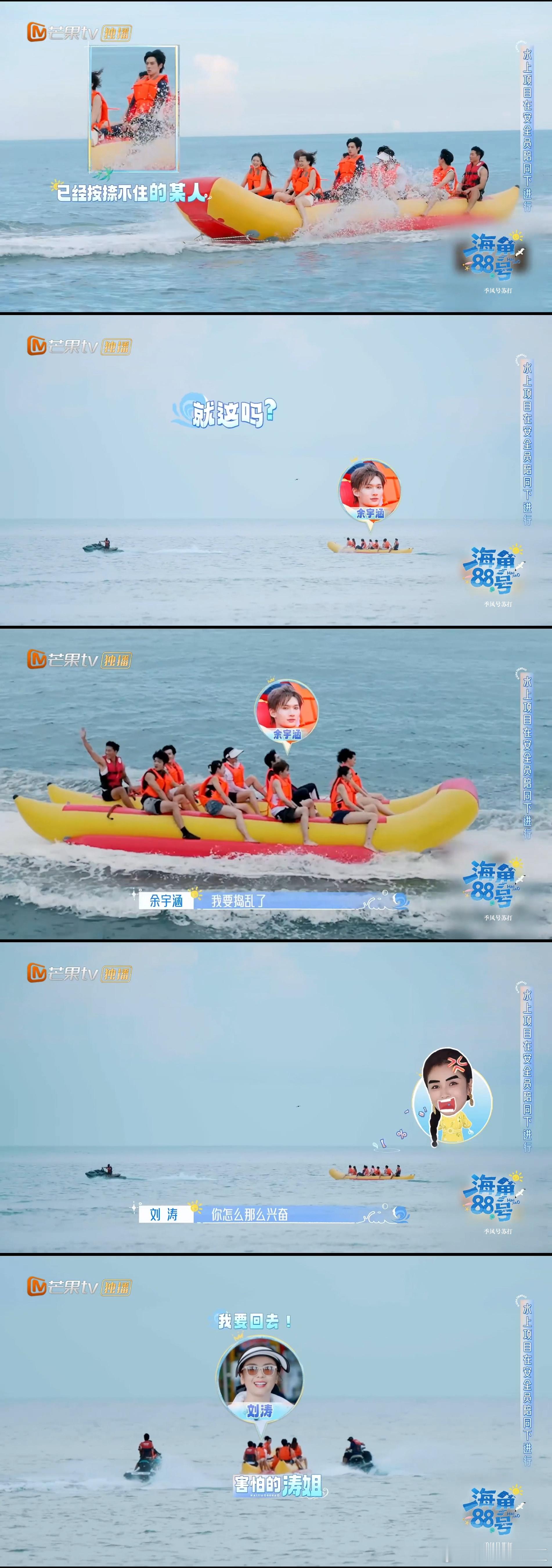 刘涛这次看清余宇涵了 涛姐从刚开始的温和老师,到现在完全“看清”余宇涵的魔童本性,尤其是在香蕉船上的那一段,余宇涵简直是满天飞,涛姐都要喊停了,笑得我不行!