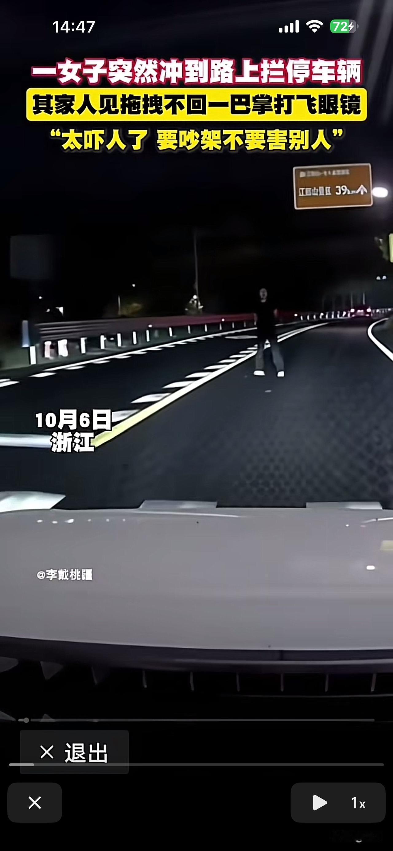 夫妻吵架不要危害路人,不听劝直接扇耳光 近期网友夜间开车回家,一女子发生矛盾,挡在马路中间,其家人发现拖拽不回,直接一巴掌打飞眼镜。针对此事,大家怎么看?