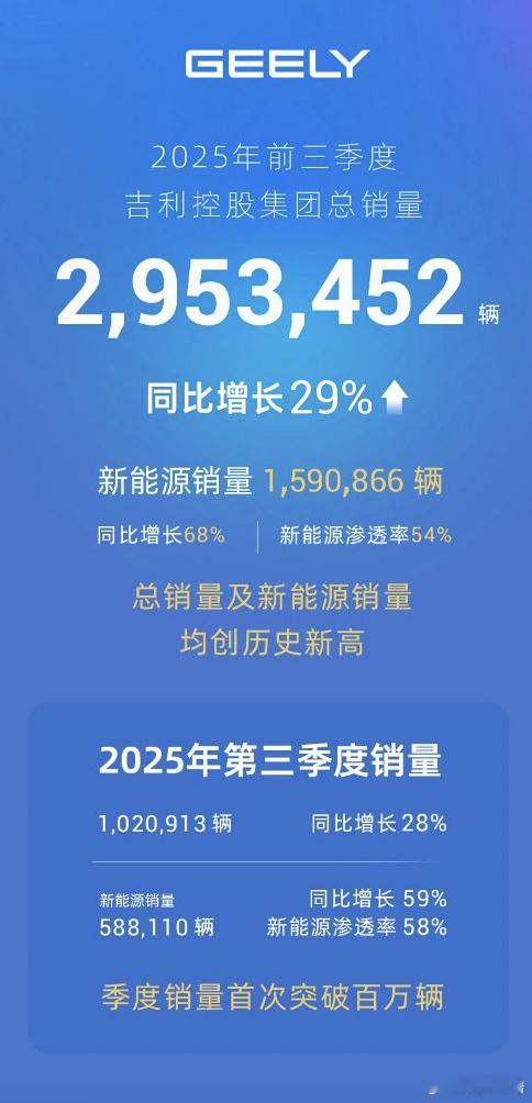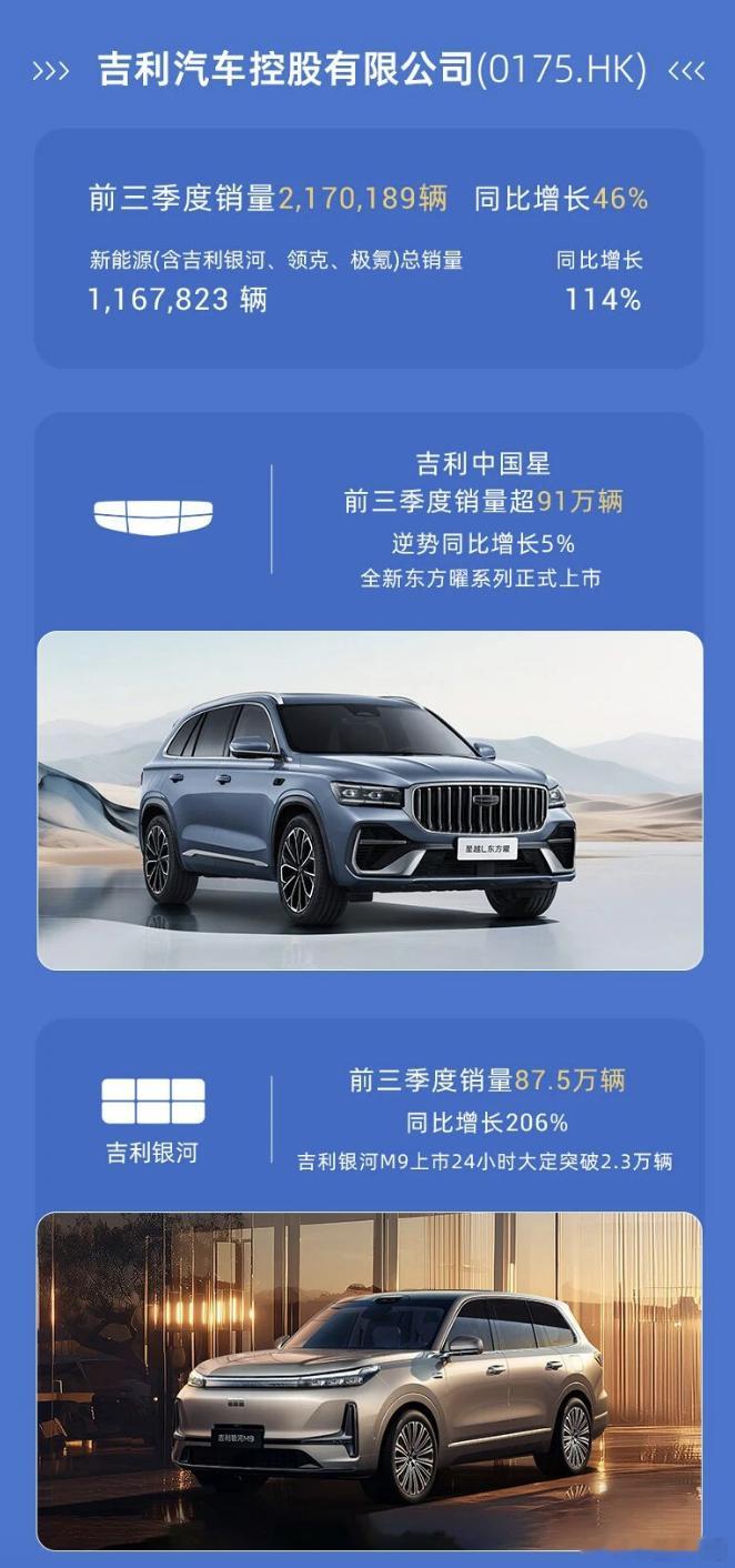又创纪录了!吉利集团前三季度总销量295万辆10月13日,吉利控股集团宣布,吉利