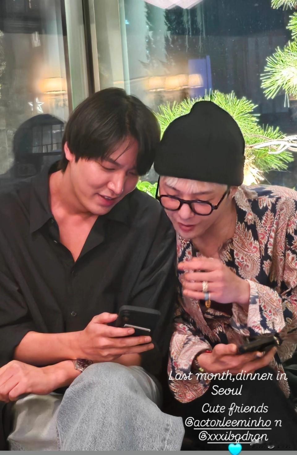 Eva chow更新志龙李敏镐合照。 第一次看韩剧喜欢的男人和现在爱的男人同框了。[奸笑]以前看韩剧超喜欢李敏镐,现在我超爱龙,居然玩到一起,真好! 和李敏镐一比,龙的男生女相真的非常明显了,果然是贵命![吃瓜群众] 感觉李的花期太短了,不合常理,男明星一般越老越好看![吃瓜群众] 韩剧男明星 权志龙 欧巴合照