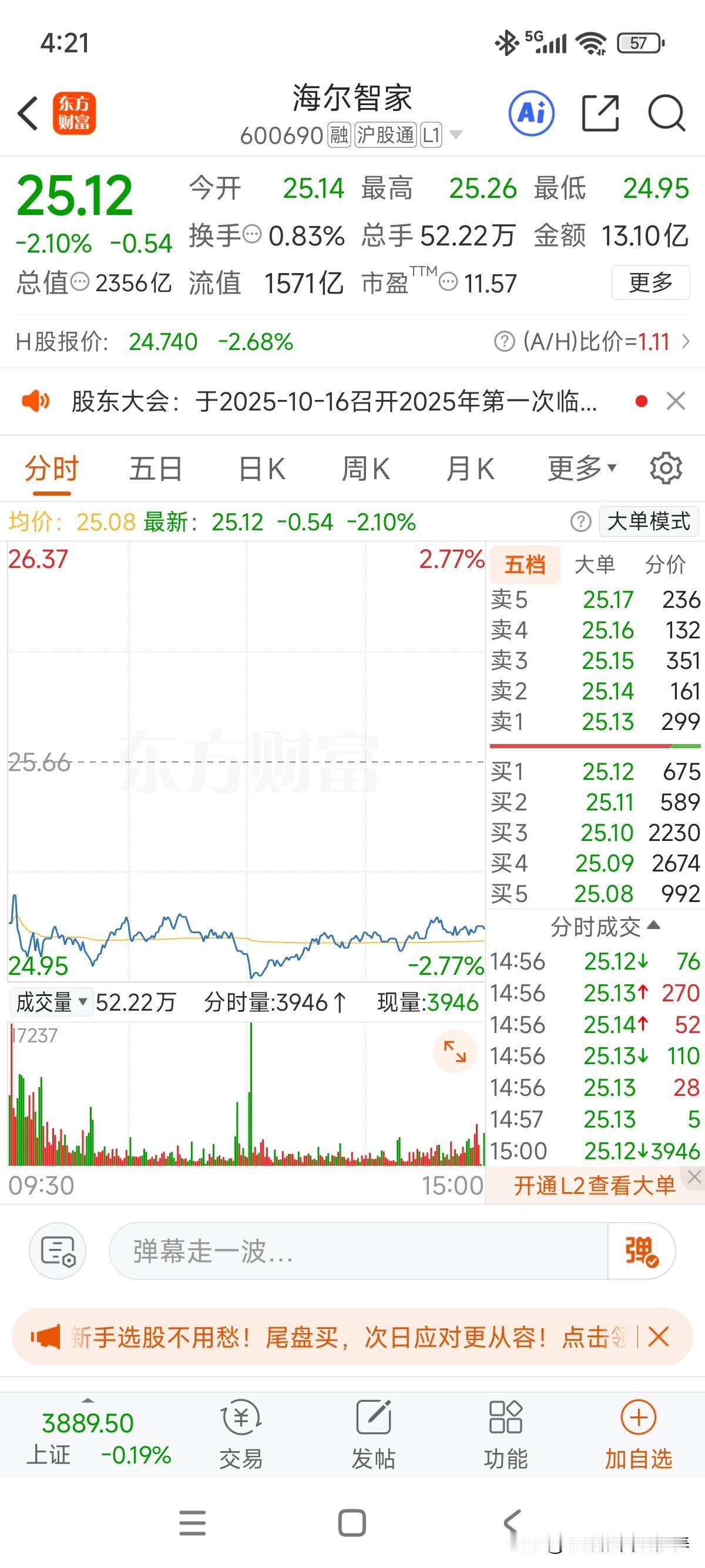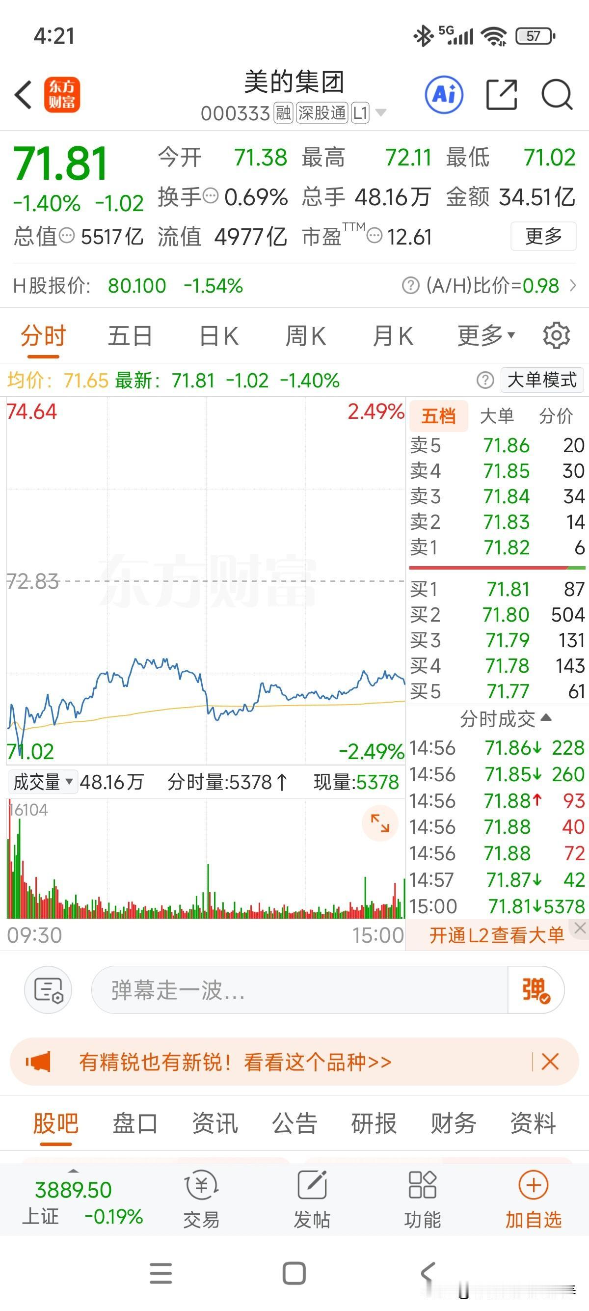 今天怒涨4分钱,居然翻红了,真不容易,白色家电三巨头中唯一一个今天日线收阳线的,