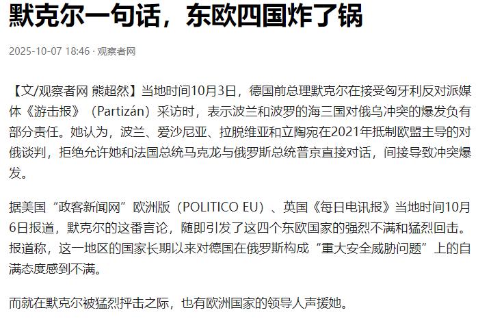 默克尔突然爆料,令全世界极度震惊!导致俄乌冲突大爆发的居然不是老美,而是波兰刻意火上浇油!最希望大毛与二毛两败俱伤的就是他们的邻居波兰!太可怕了! 时间倒回2021年6月,默克尔还坐在德国总理的位置上,她跟法国前总统马克龙早就盯着俄乌边境的动静捏了把汗。那时候的局势已经像堆着干柴的火药桶,乌克兰官方天天喊着俄罗斯在边境集结了重兵,后来美国媒体爆料说实际兵力可能都超过12万,地面部队就有近10万人,坦克、战机这些重型家伙密密麻麻摆了一路。 克里米亚半岛上的俄军演习更吓人,1万多士兵、200架战机再加60多艘军舰,那阵仗明摆着是局势要失控的信号。更要命的是乌克兰东部,《明斯克协议》早成了一纸空文,顿巴斯地区的枪声就没断过,今天你打过来,明天我打回去,眼看就要从局部摩擦变成全面冲突。 默克尔和马克龙心里比谁都清楚,再不管不顾肯定要出大事,这可是关乎整个欧洲安危的大事。 俩人连夜合计出个“救命招”,搞了个叫“欧盟—俄罗斯新谈判模式”的倡议,说白了就是让欧盟以整体身份跟普京直接对话,这可是2014年克里米亚危机之后,欧盟第一次主动提这么高级别的面谈,等于给剑拔弩张的两边架起了一座和平桥。 后来默克尔回忆起这事儿就心疼,说那是欧洲能阻止战争的最后机会,只要谈成了,多少家庭能免于战火,可谁能想到半道杀出个程咬金。 更难得的是,俄方当时也有对话的意愿。普京直接表态说对欧俄关系持开放态度,想恢复全面伙伴关系,甚至特意在德国媒体上发文章,说欧俄面临共同挑战,得一起应对 你想啊,一方愿意搭桥,一方愿意过桥,这机会多宝贵,简直是老天爷给欧洲的救命稻草。可就在这节骨眼上,波兰突然跳了出来,二话不说就给这桥来了一锤子。 波兰代表在布鲁塞尔的非公开会议上率先拍了桌子,说这谈判根本不行,还扯着嗓子喊“欧盟内部没有统一对俄政策,谈判只会被俄罗斯利用,最后坑了乌克兰和我们东欧国家”。 光自己反对还不够,它又拉上立陶宛、爱沙尼亚、拉脱维亚这三个波罗的海小国,四个国家拧成一股绳跟德法叫板。要知道当时德法在欧盟里算是主心骨,可架不住这四国抱团反对,硬生生把这桩天大的好事给搅黄了。 现在回头看,波兰这哪是一时冲动,分明是早就算计好的,就等着俄乌闹起来。 这事儿得从历史里找根由,波兰跟俄罗斯的仇怨能追溯几百年,三次被沙皇俄国瓜分、二战时的卡廷惨案、斯摩棱斯克空难,这些伤疤早刻进了波兰的民族记忆里,反俄成了刻在骨子里的执念。这些年在欧盟里,它就专跟德法这些“老欧洲”唱反调,亲美反俄成了外交核心,总想借着对俄强硬刷存在感。 更关键的是波兰的小算盘——想当中东欧的“带头大哥”。要是俄乌真打起来,美国和北约肯定得更倚重它这个“东欧门户”,到时候它在欧盟里的话语权不就水涨船高了? 后来的事儿也印证了这心思,俄乌冲突一爆发,波兰比谁都积极,72小时就安置好第一批乌克兰难民,还直接从国防部调车送援助,绕开了欧盟的协调机制。 不光自己上,还天天逼着德国给乌克兰送“豹2”坦克,德国一犹豫就被它骂得体无完肤,甚至放话要绕开欧盟单独行动,这分明是借着战争给自己攒资本。 可这算盘打得精,良心却丢了。默克尔在采访里说得明白,那次谈判黄了之后,因为新冠疫情没法面对面沟通,本就脆弱的对话桥梁彻底断了,俄罗斯的立场也慢慢变得极端,最后才走到战争那一步。 更讽刺的是波兰嘴上喊着支持乌克兰,转头就因为乌克兰低价谷物冲击本国农业,二话不说就封了边境,把之前的“兄弟情”抛到九霄云外。这前后反差,把它“只想借战争谋利”的心思暴露得一干二净。 现在默克尔把这事儿捅出来,根本不是要翻旧账,就是想让全世界看看,有些国家为了自己的地缘野心,能多狠心——明明有和平的机会,偏要亲手掐灭;明明知道战火会烧遍欧洲,偏要火上浇油。波兰总理后来甚至说“打败俄罗斯是欧盟存在的意义”,这话听着就让人后背发凉。 想想真是可惜,2021年6月那回要是谈成了,顿巴斯的枪声能停,边境的重兵能撤,多少家庭不用妻离子散?可就因为波兰这一己之私,硬是把和平的门给焊死了。 现在欧洲被能源危机、难民问题折腾得焦头烂额,再回头看默克尔说的那句“那是最后希望”,才明白这几个字里藏着多少无奈和痛心。有些国家的利益算计,从来都是用别人的鲜血铺就的,这才是最可怕的地方。