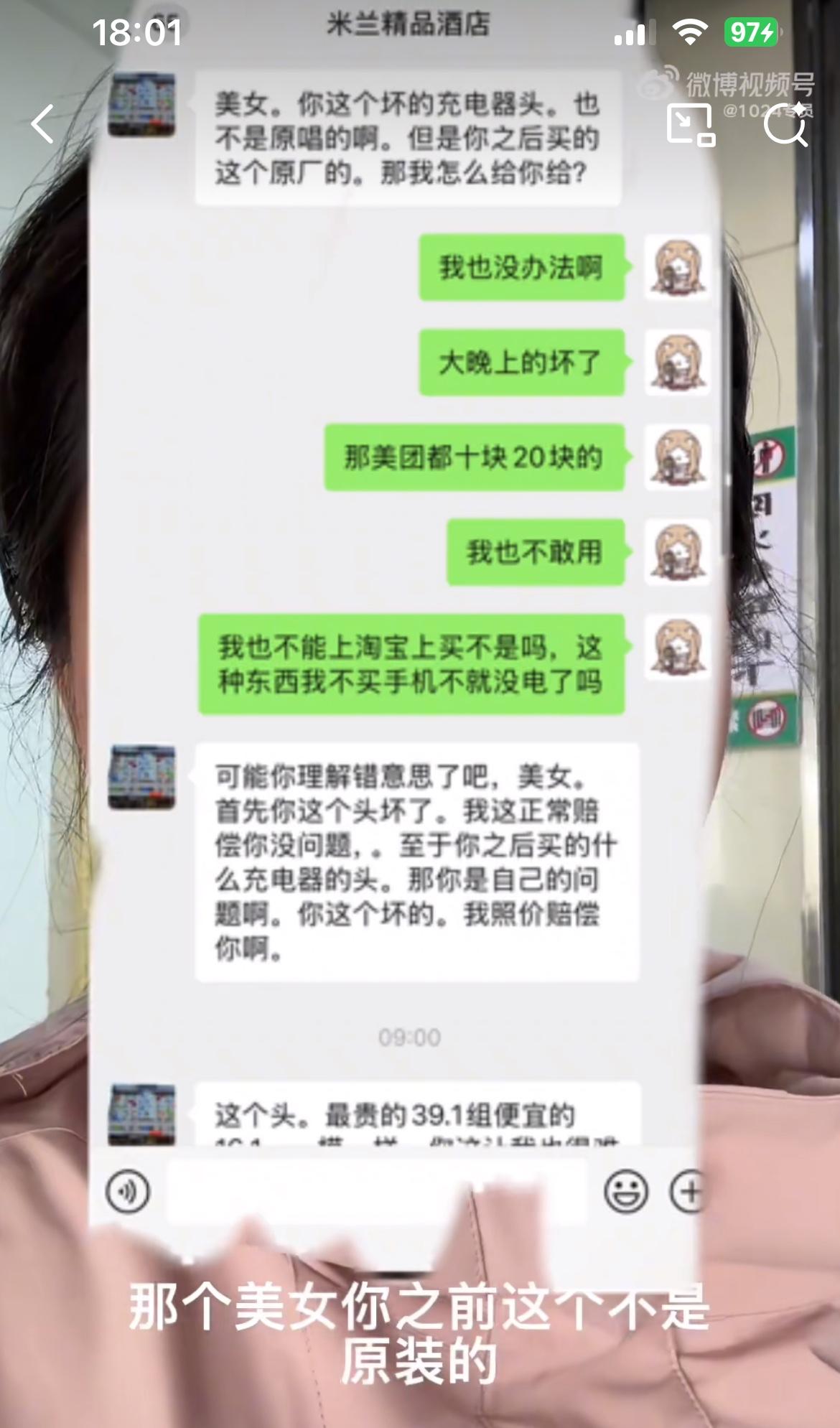 美女惨被打脸,一个苹果充电器坏了,找酒店索赔不得,愤而发视频网曝。结果酒店发澄清视频,还原真相。女滴充电器坏了,说是酒店的插座短路导致的,现在的短路一般都是漏电开关跳闸,不会烧电器设备。于是女滴在某团买了一个130的充电器,拿了130块的发票找酒店要钱,酒店说坏的充电器不是苹果原装的,随后又拿出一个45的票。让酒店感觉被欺骗,说想买一个一样的赔给女滴,女滴就不愿意了,女滴愤而发视频。事发哈尔滨某酒店。手机充电器着火 酒店遭糟心事