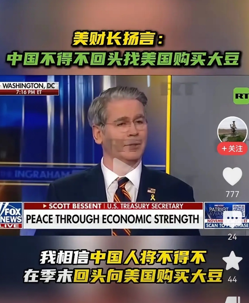 “中国将会不得不回头购买美国的大豆”,这位“擅长拳击”的美国财长说出这话,说明他即不了解中国,也不了解中国人。