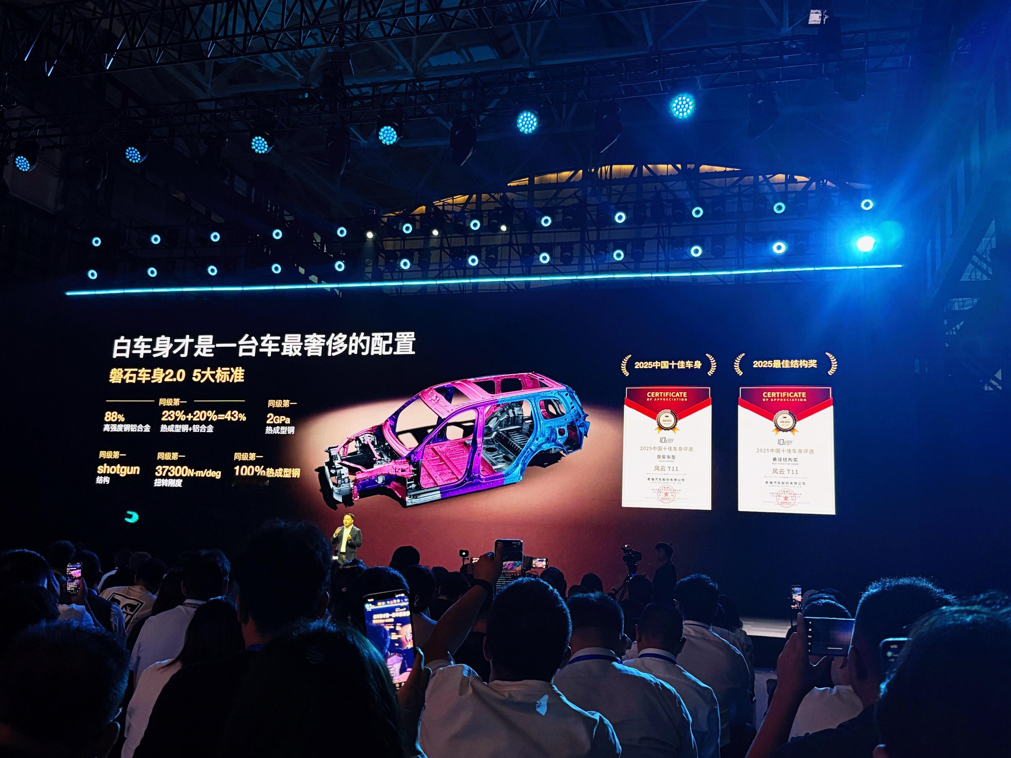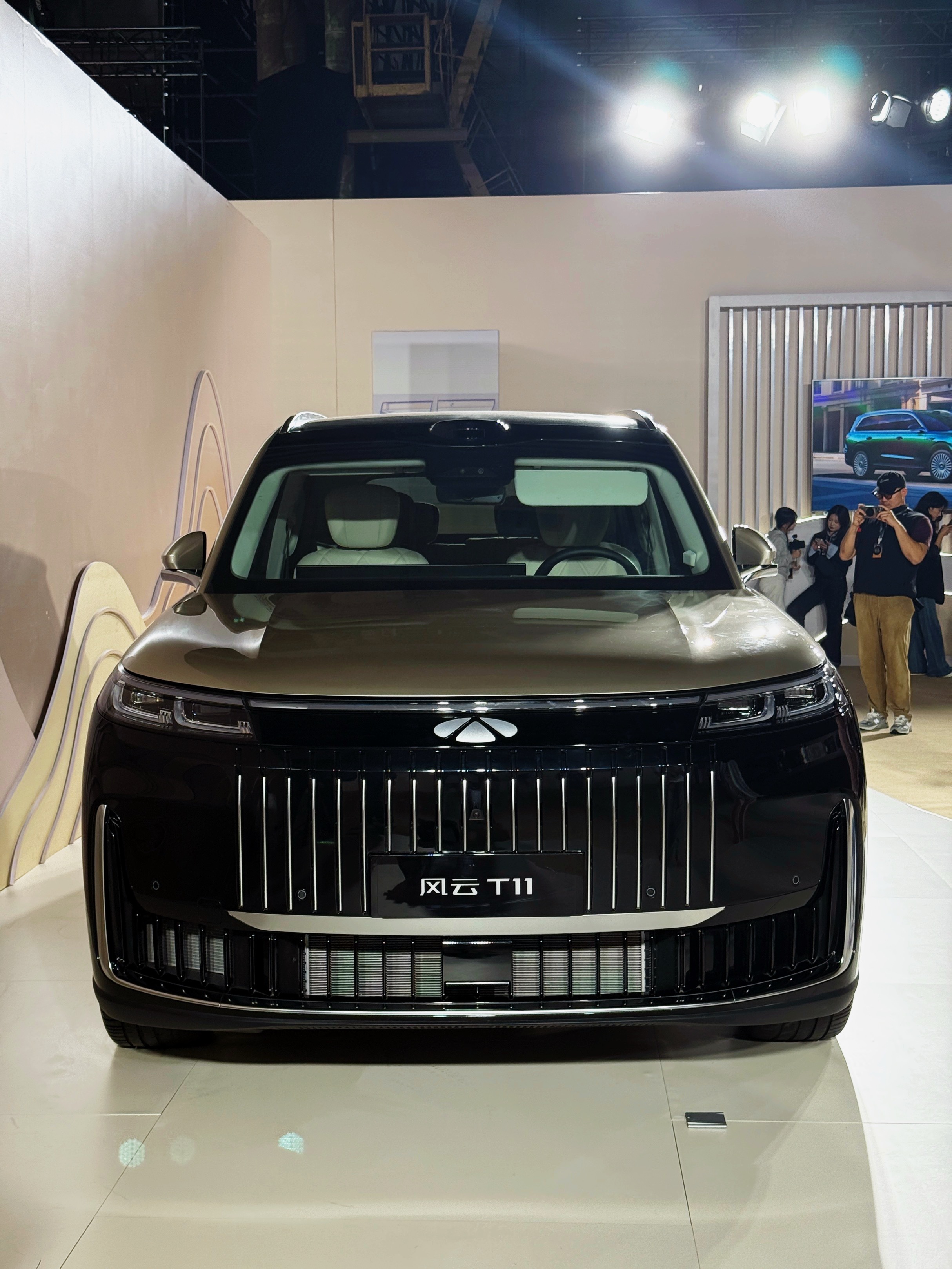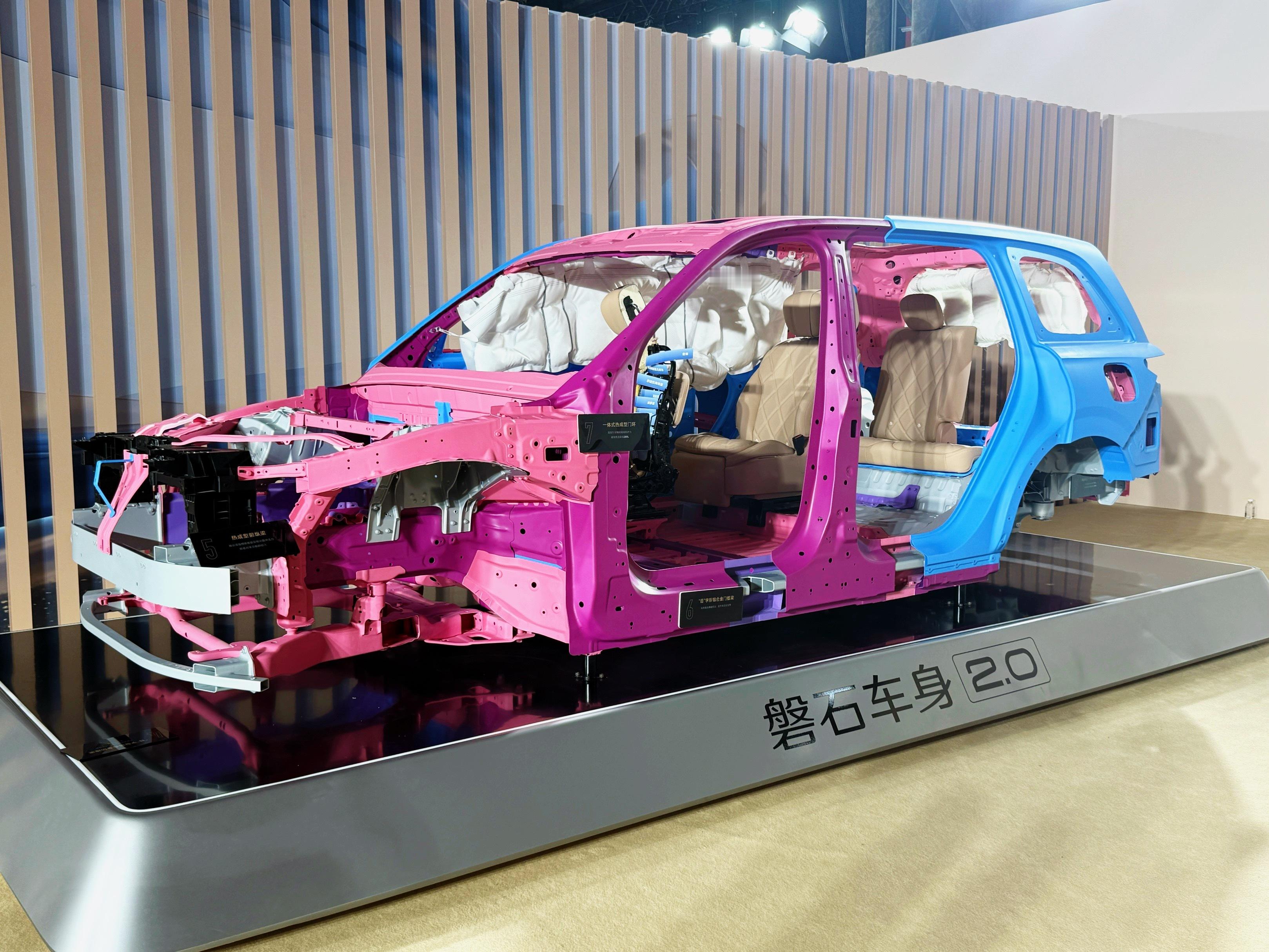 前脸设计很霸气风云T11 准零重力座椅独立展示,有腿托能大角度展开。磐石车身2.0高强度钢和高强度铝合金比例很高。