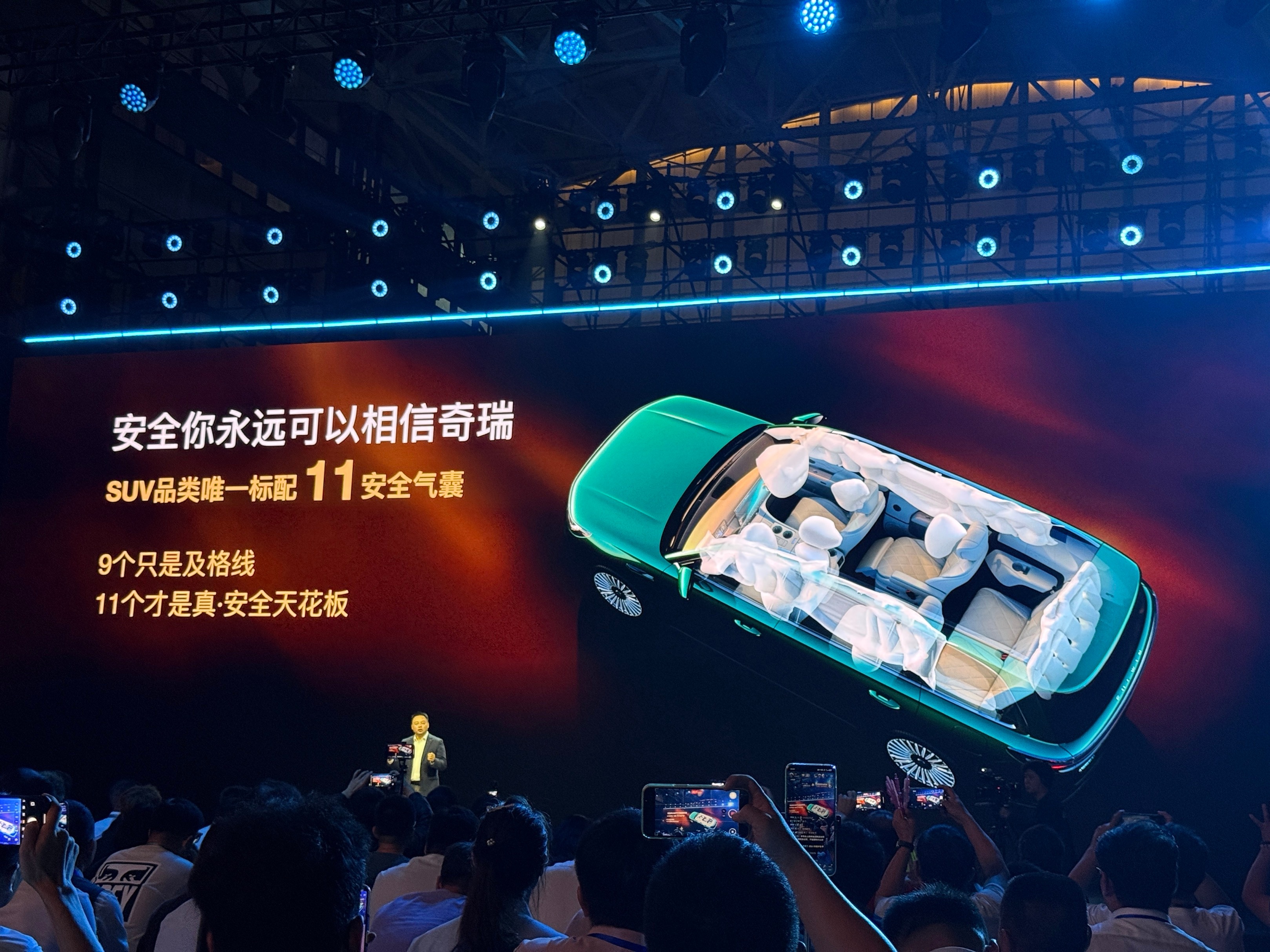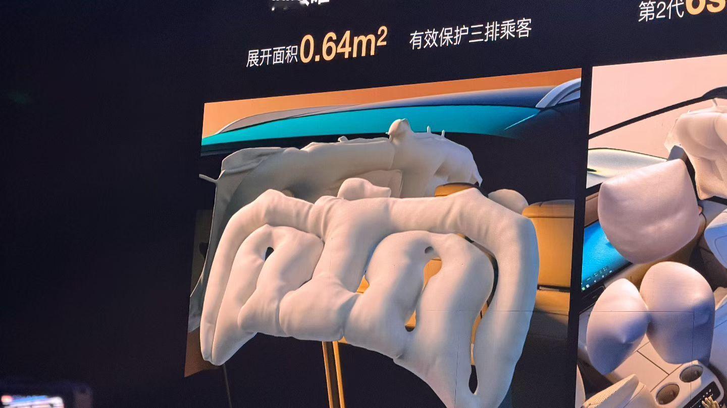 奇瑞旗下,安全上投入很大,T11搭载11个安全气囊,超过行业常规的9个。奇瑞风云T11在尾窗布置了一个气囊,横在第三排座位的后部头顶。