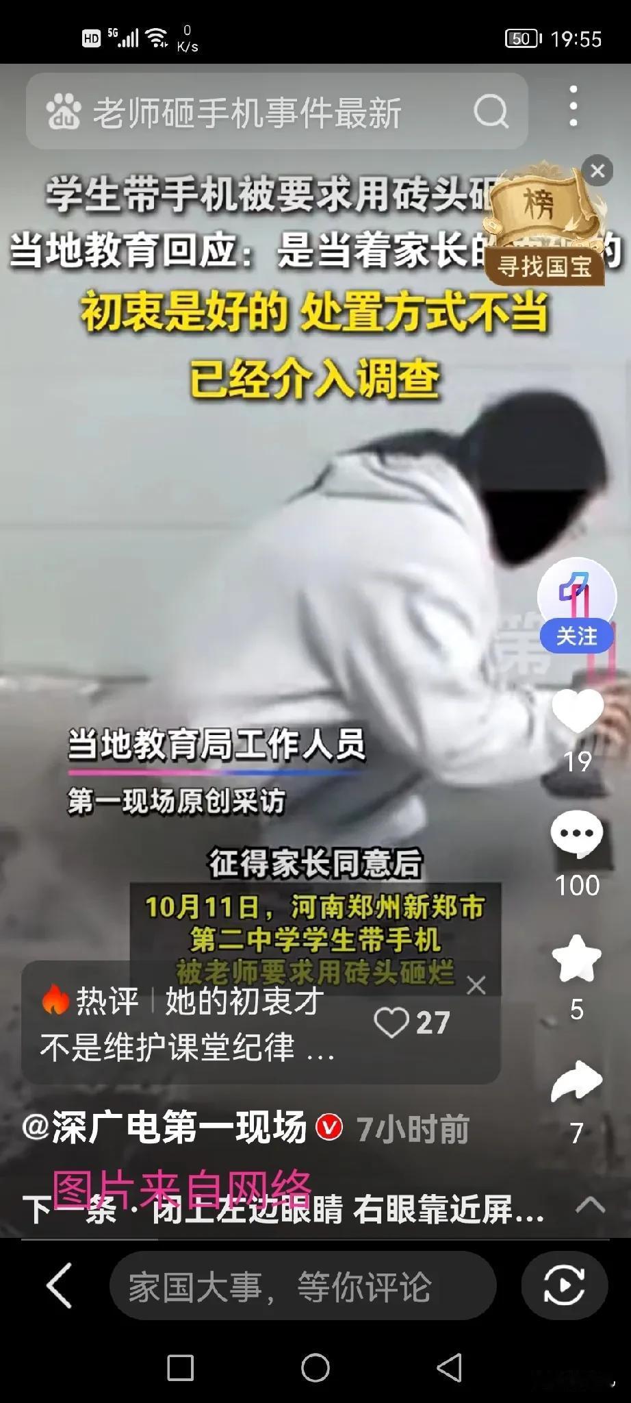 违规就要“治”,这是负责任老师的底线。 中学生偷偷把手机带进教室,老师处理虽不妥,为什么得到那么多家长支持? 10月11日,河南郑州新郑市第二中学一名学生因携带手机到校,被老师要求用砖头当众砸烂手机。现场视频显示,老师询问家长是否同意后,监督学生执行并强调“用力砸”。 10月13日教育局介入调查后,明确表示销毁财物方式欠妥,但肯定教师维护课堂纪律的初衷。 砸了一部手机,震慑了全班孩子,我认为没太多不妥,如果通知家长把手机领走,别的学生看到课堂玩手机,还会归还家长,别的孩子也有带的,即使上课不玩,下课也玩。 砸了一部手机,也许成就了几个孩子。你说值不值?
