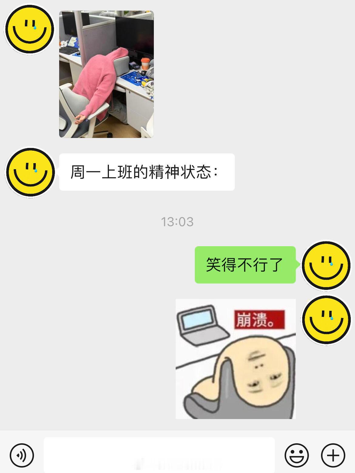 调休加上周一上班的真实状态睡醒看到同事发的消息真的笑得不行早上起床以后至今未真正