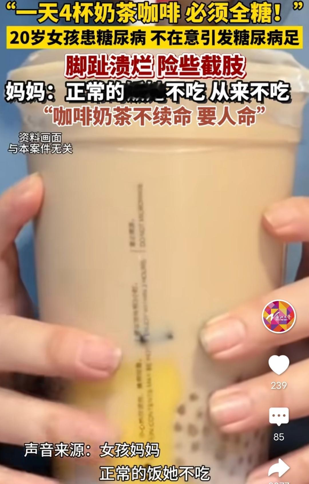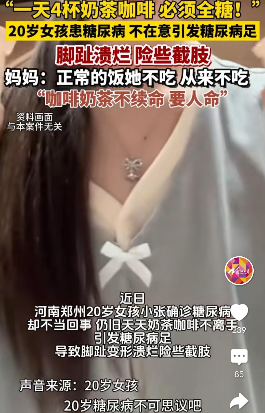 一天4杯奶茶咖啡,必须全糖!20岁姑娘患糖尿病,脚趾溃烂险截肢,妈妈:正常的饭她