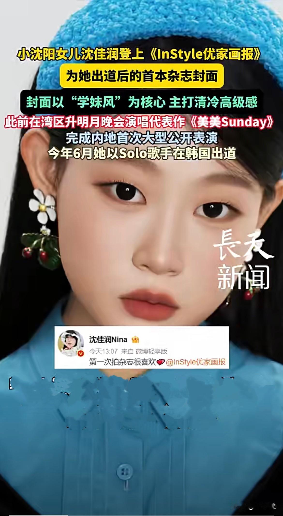 小沈阳女儿沈佳润登上 《Instyle优家画报》杂志封面了,是她出道后的首本杂志封面,厉害…… 沈佳润的首封杂志封面高级范儿十足,清冷学妹风迷人,喜欢她唱的《美美 Sundav》,都被洗脑了…… 沈佳润的五官长得很精致,很漂亮,单看哪个都好看,就是单眼皮也很撩人,比千篇一律的网红脸好看多了,长的清新脱俗,令人赏心悦目…… 小姑娘的情商很高,语言很丰富,说话轻声细语叫人很愿意倾听,令人舒服,很喜欢她…… 这样的沈佳润你们喜欢吗?