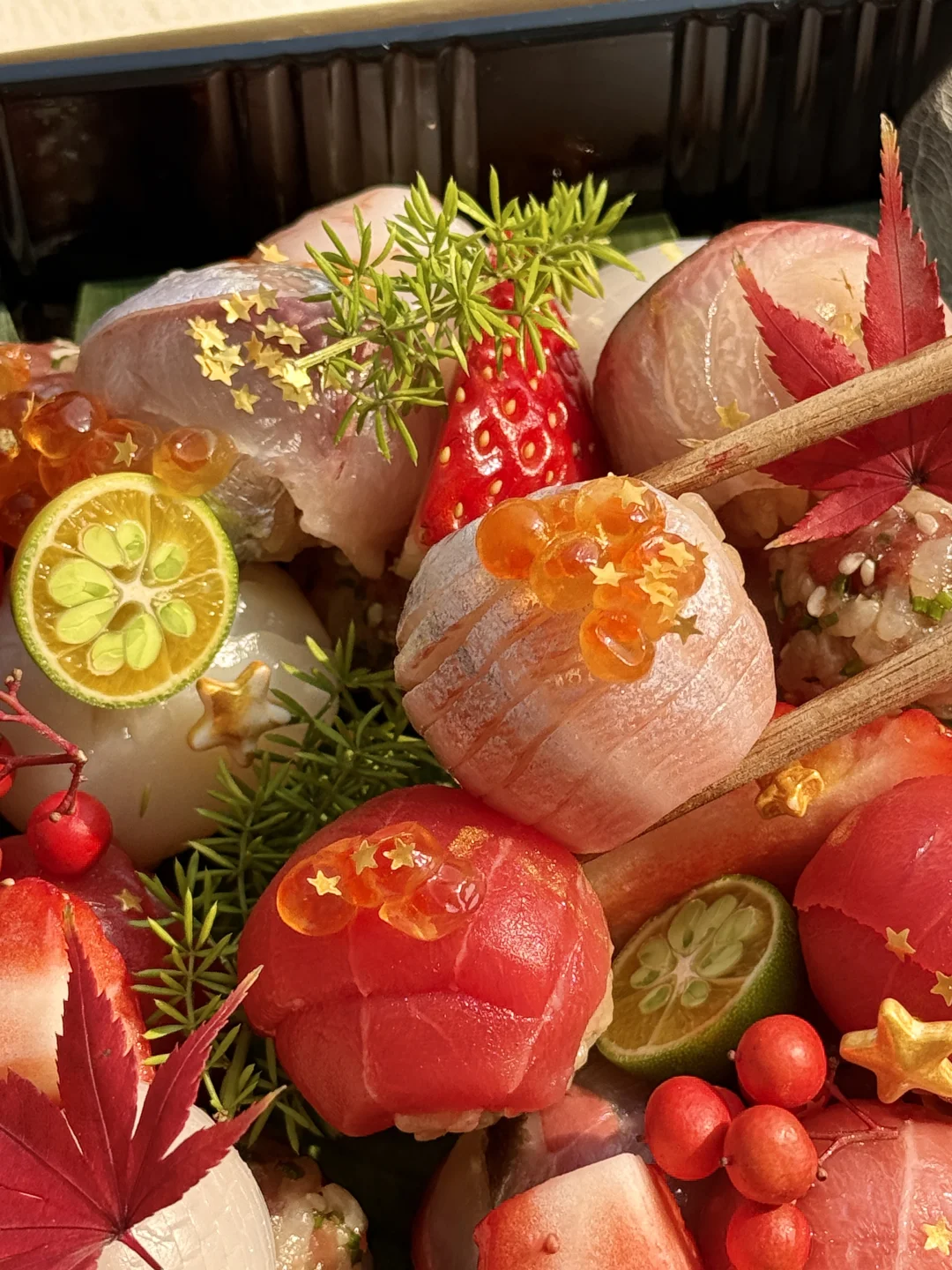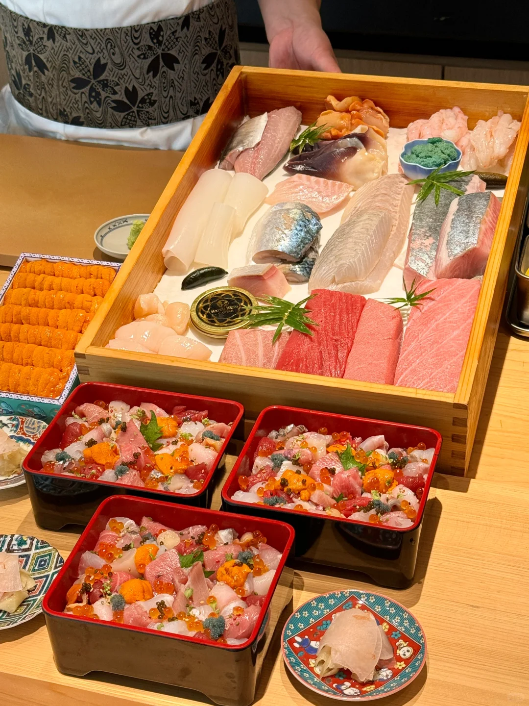 鲜嫩肥美的鱼生饭!还有花环寿司🍱!! 入口比我想象的味道还要惊艳!!吃到超满足!! 蓝鳍金枪鱼大腹、中腹、小竹荚大竹荚、枪鱿鱼、甜虾、海胆鲑鱼子…食材吃得出来新鲜,种类丰富!!搭配的口感非常nice! 摆盘也好精致好高级!! 是我心中前三的OMAKASE没错了!📍鯤·KON。