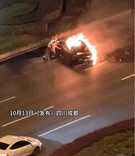 打不开的车门,挡住了最后一线希望。 驾驶员这时候已经处于昏迷状态了。车门还处于锁闭状态,而车辆已经起火了。 好在起火位置是在汽车后座位置,这几位勇士,当时觉得还是有希望把人救出来的。所以,他们不顾自身安危,用力的拉着车门,发现车门无法打开后,他们尝试着打碎玻璃来开门,用手掌拍打,用手肘击打,甚至用脚踹玻璃,也没有把门打开。其中一位勇士手臂上,更是由于救人心切,手肘击打玻璃时,伤到了自己,血顺着手臂流了下来。 虽然最后用锤子砸开了,但由于火势的迅速蔓延,随时有爆炸的可能,他们只能放弃了救援。 最后,这辆小米手机连车带人被烧的面目全非了。
