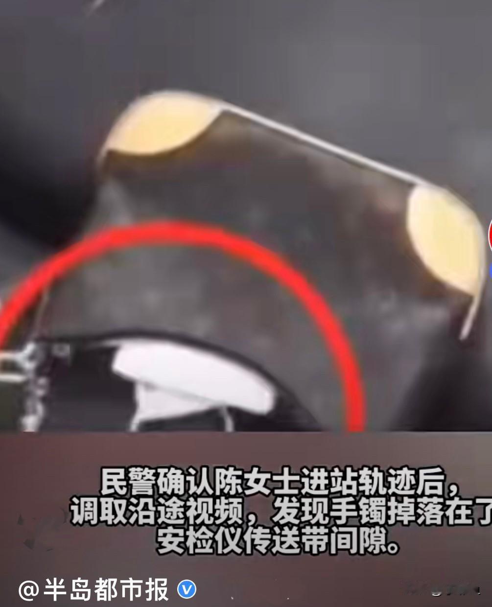 近日,陈女子在南京火车站过安检时,也太大意了,90克的金手镯就那么光溜溜的随便放