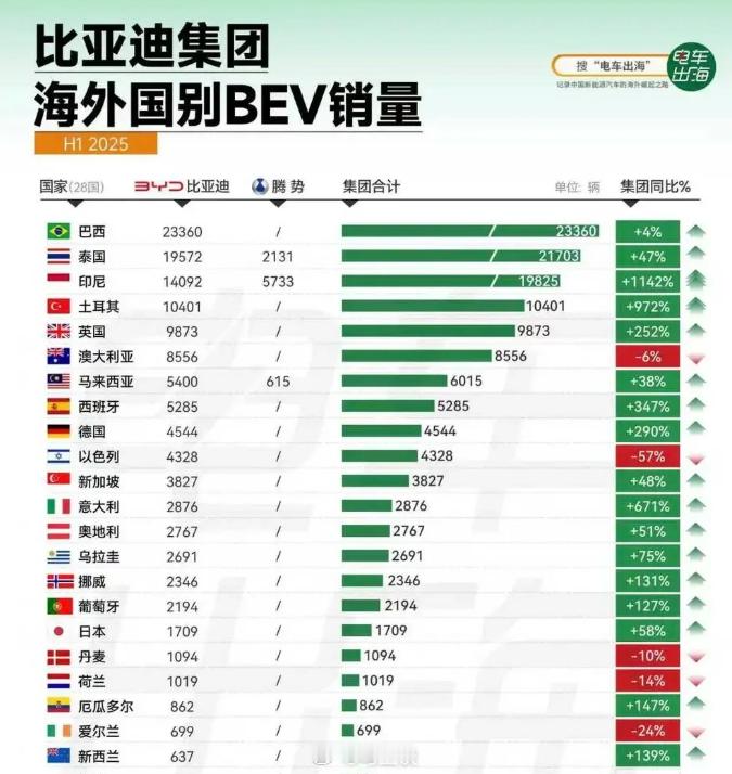 电车出海进行时!比亚迪在巴西迎来第1400万辆下线,中国制造全球化开启全新篇章!看了这销量,中国新能源汽车特别是比亚迪在海外的销量开始起飞了!但比亚迪最大的海外市场不是欧美,海外销量排名前三的是巴西、泰国和印尼,是不是很意外?个人分析,首先,类似巴西泰国印尼这种热带气候国家,真的非常适合电车,一是电池适应;二是等于买了个移动空调;三是比亚迪电车的智能化做得非常棒;其次,也要欧美市场对中国汽车设置障碍的原因,比如北美市场,中国想出口一辆电车到北美,几乎是关隘重重。