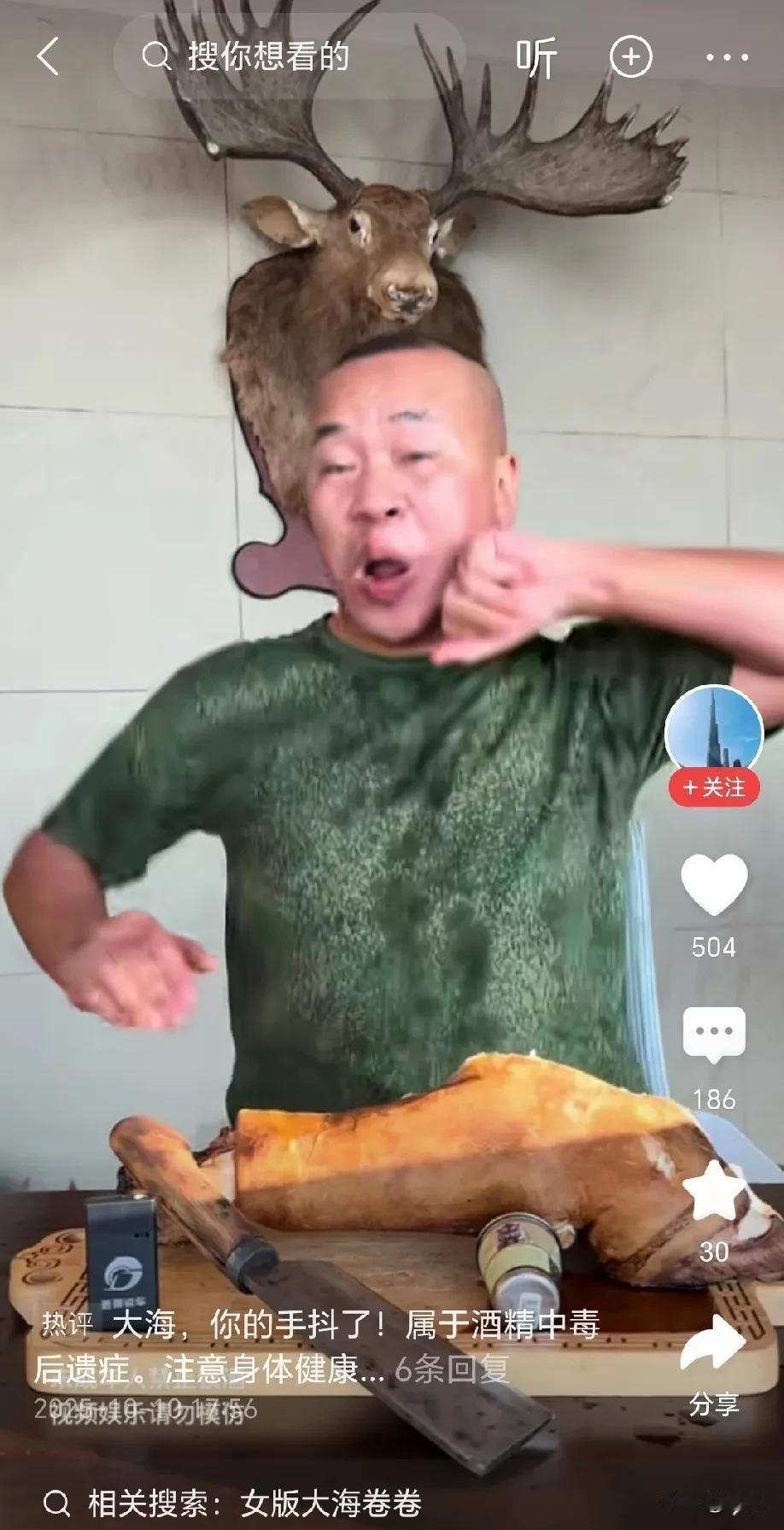 这钱挣的真不容易,但是我不羡慕! 最近刷到一个叫大海的博主抽自己耳光,抠自己嘴巴打响的视频,视频中,博主随着明快的音乐节拍,不断的用手指抠嘴巴发出响声,期间还会抽自己耳光,第一次刷到这个视频的时候,心里一惊,还有这样自虐的人?一瞬间还感觉挺心疼的! 后来看的多了,不免多了一分喜感,因为节奏感很强,很上头,不免让人感慨,这年头挣钱真不容易,没点绝活还不敢出来混呢! 本以为这个赛道没人抢,不料,类似的视频又刷到好几个,男的也有,女的也有! 一个两分钟的视频拍下来,博主的脸颊明显有些黑红,中途他会给自己倒一杯酒,有时喝,有时候浇在头上,然后摔杯,突然喊一嗓子,可能是给自己缓解一下吧! 看他拿酒瓶的手,一直不停的颤抖,就知道这活儿有多累了,反正这钱我挣不了[捂脸] 一句话,脸皮薄的人没法拍这个!