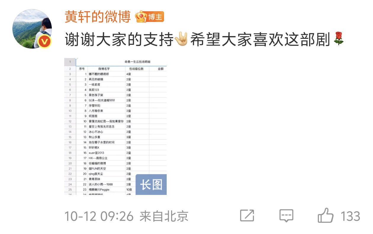 额滴天,第一次见明星拉表感谢包场粉丝的黄轩还得是你[作揖][作揖][作揖]命悬一