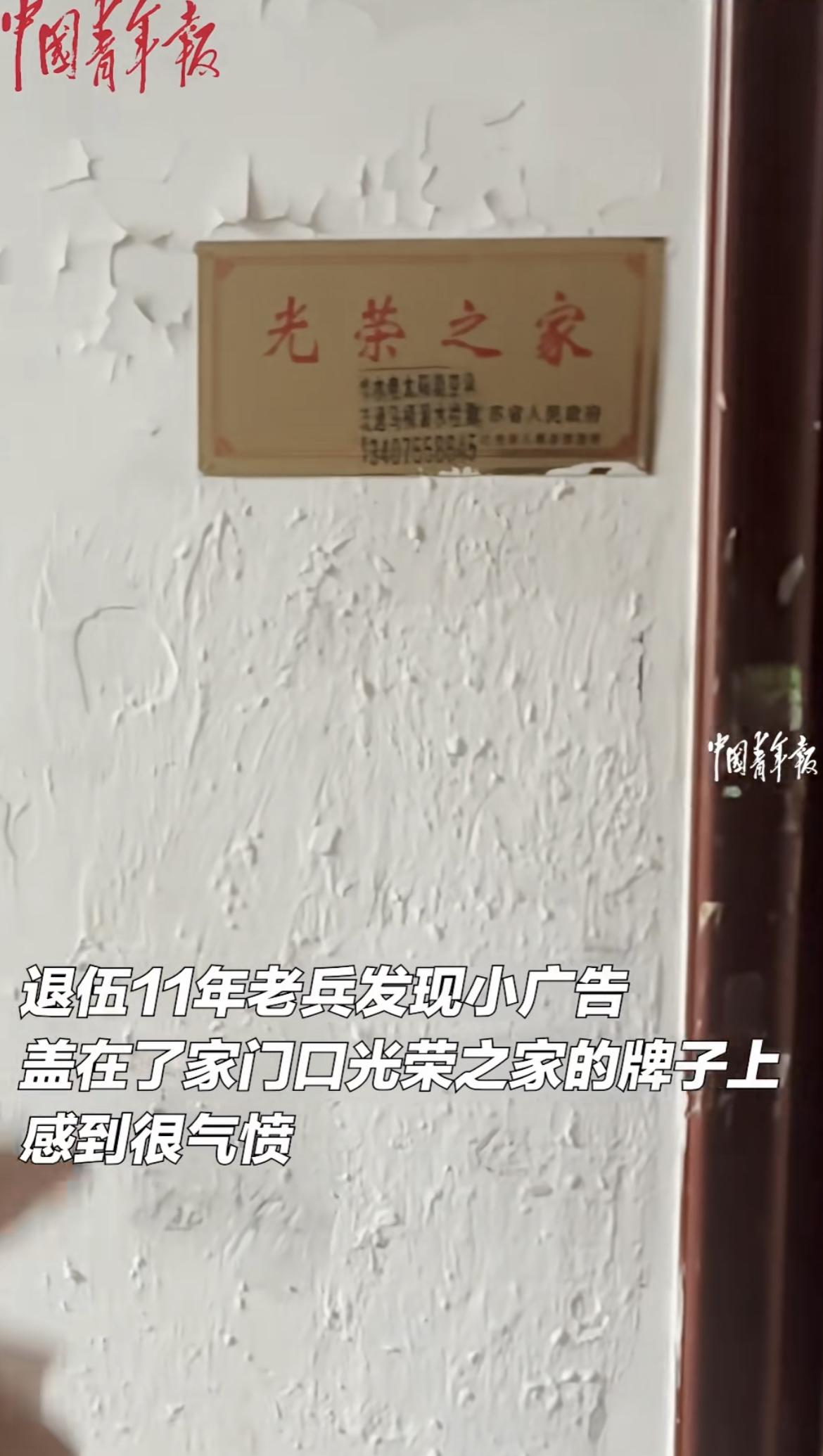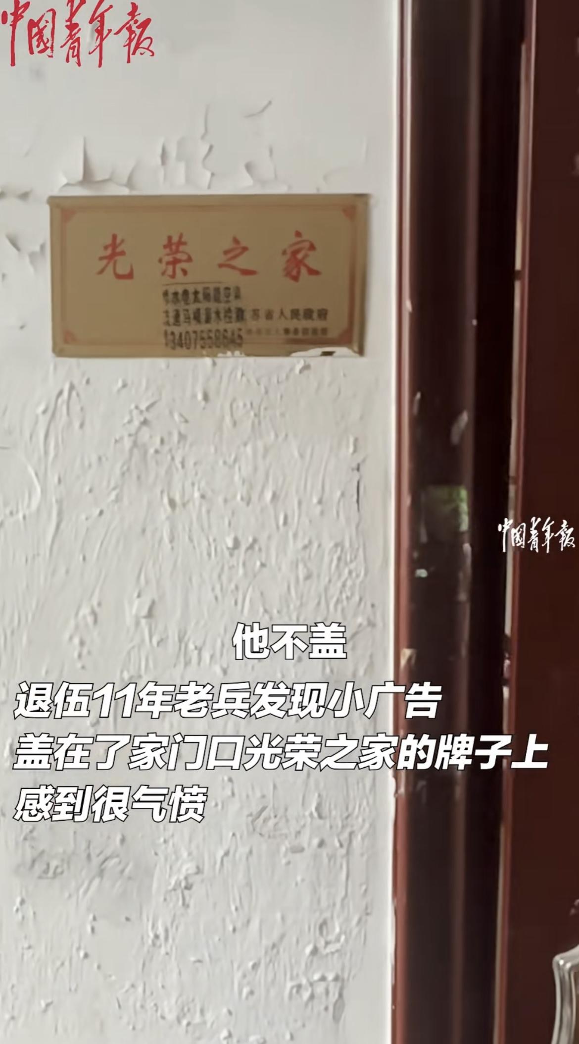 江苏,一退伍军人大哥家门口,贴着一张“光荣之家”的牌子,结果这天大哥出门时,竟看到有人在牌子上印了一个小广告。为此大哥很心疼牌子被弄脏,因为虽然他已退伍11年了,但大哥一直很珍惜这份荣誉。随即大哥擦干净了牌子上的小广告,并无奈的表示:这么大的空白地方不盖,却偏偏要盖在光荣牌上,这种侮辱或损坏光荣之家的牌子的行为是违法的呀! 据中国青年报10月5日报道,一名男子回家的时候看到自己的光荣牌上面竟被贴上了小广告,十分的生气。这事看着不大,却引发了比预想中更复杂的反响。 它能让人看到两方面情况,一是退伍老兵对这块牌匾的珍视和宽容,二是国家荣誉背后的法律严肃性,还能反映出公共舆论场里复杂又激烈的情绪。 事情的起因是一位已经退役十一年的老兵在回家的时候偶然间的看到自己家门旁边颁发的光荣之家上面竟然被贴上了小广告,令老兵愤怒的不是小广告而是有那么大的空白地,不贴偏偏选择贴在了代表着荣誉的牌子上。 对于这位已经退役十一年的老兵来说这块牌匾的重要性比法律条文大得多,他看到牌匾被弄脏,第一反应是 “特别心疼”,接着就亲手一点点把广告擦干净。 这个动作,比说任何话都更能体现他心里那份厚重的荣誉感。 事后他拍视频发出来,原本也不是为了追究责任,只是想 “提醒大伙”,别再随便破坏这份神圣的荣誉。 等网友们看到这件事情之后,很多网友纷纷在下面评论自己的看法,有一些网友在下面说,应该按照广告上面的电话给打过去,让他过来擦干净,让他明白这种荣誉感的东西是不能随便被糟践的。 此外还有人把贴广告的行为解读成 “故意做的”,觉得是因为贴在那个上面更容易被路人看见,甚至觉得这是对荣誉的挑衅。 那么通过这件事情也反映出,乱贴小广告本来就是 “城市毒瘤”,大家早就烦透了,这次刚好撞上最不该碰的 “光荣之家” 牌匾,公众心里积压的不满情绪一下子就有了宣泄的出口。 这种贴小广告的行为既是国家法律不容侵犯的庄严符号,也是老兵心里深深的情感寄托,还是一面能照出当代社会复杂心态的镜子。 它也提醒我们,尊重英雄的荣誉,光靠法律的刚性保护还不够,更需要我们每个人从心里生出敬畏,主动去守护这份光荣。 对此,你还有什么看法呢?