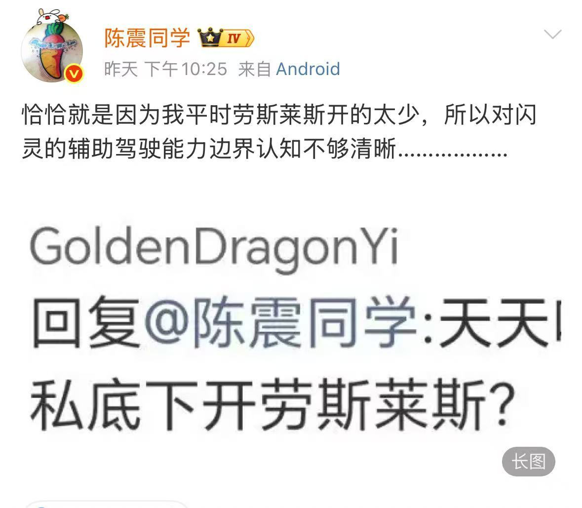 陈震发文透露劳斯莱斯事故原因 思考题:陈震的这个发言的省略号的内容,实际应该是_