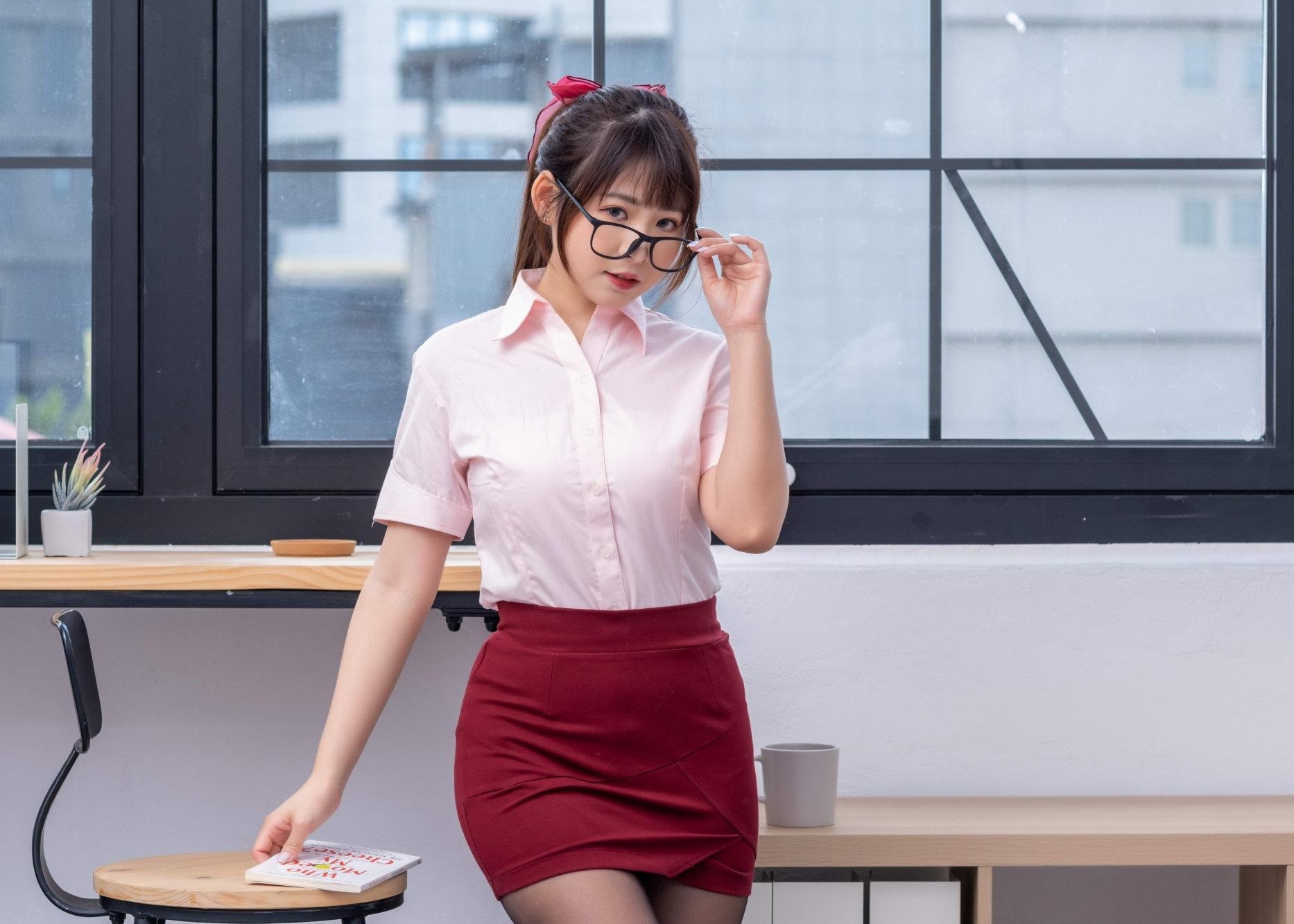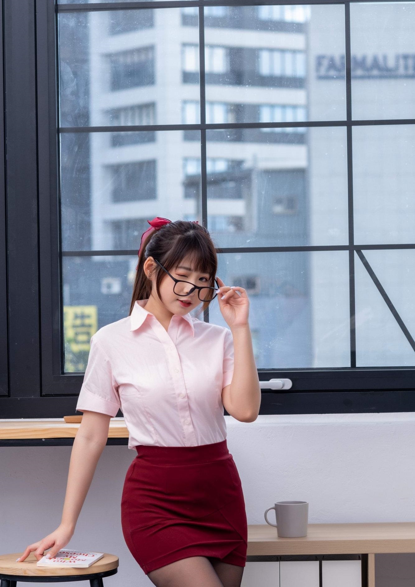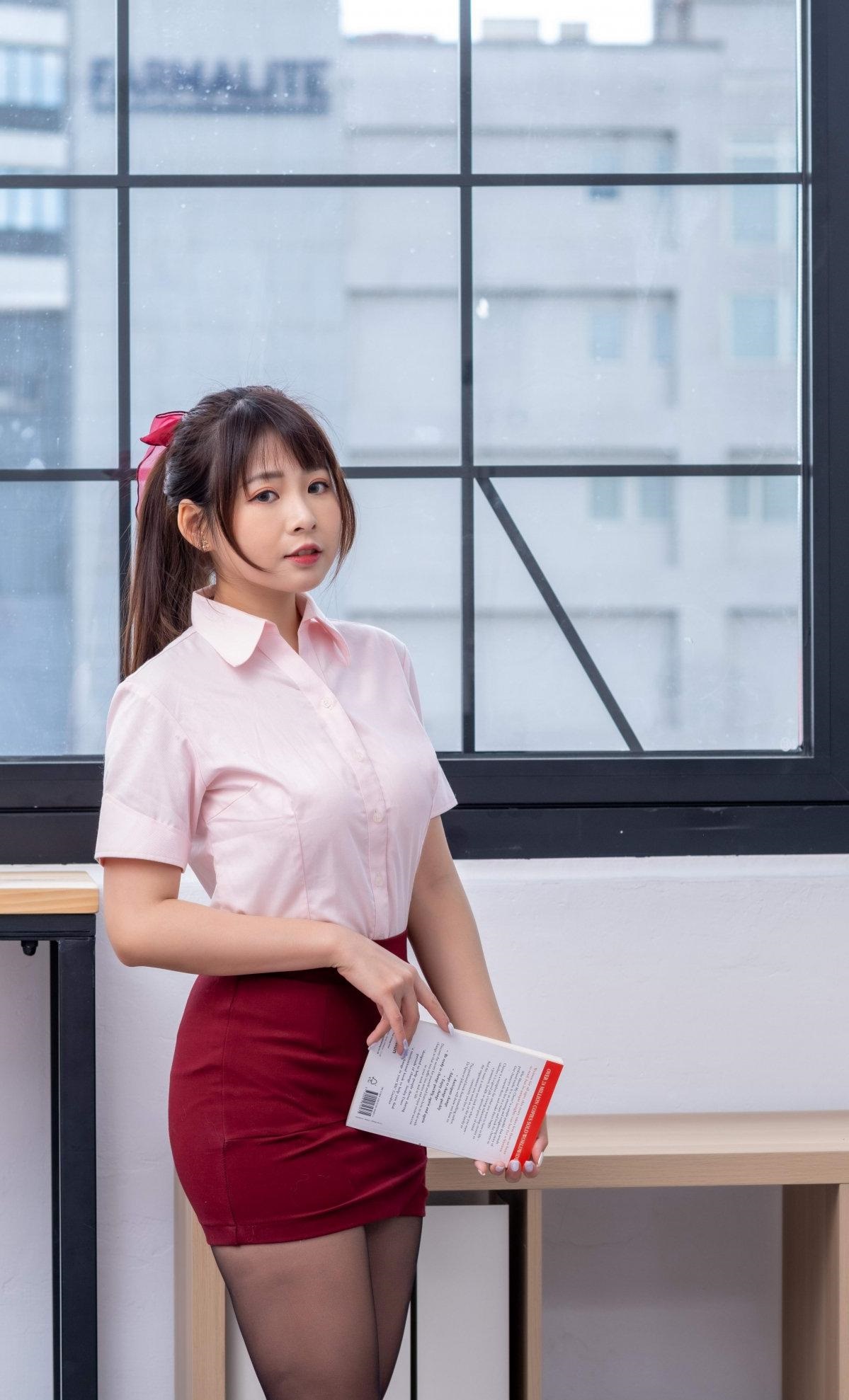 一件淡粉色的衬衫尽显甜美的立领感,对于小女生来说这样的衬衫让你尽显减龄气质,下搭一条枣红色的短裙,提升优雅的品味,纯色的款式无需任何饰品的点缀,轻松搞定你一日的通勤搭配。