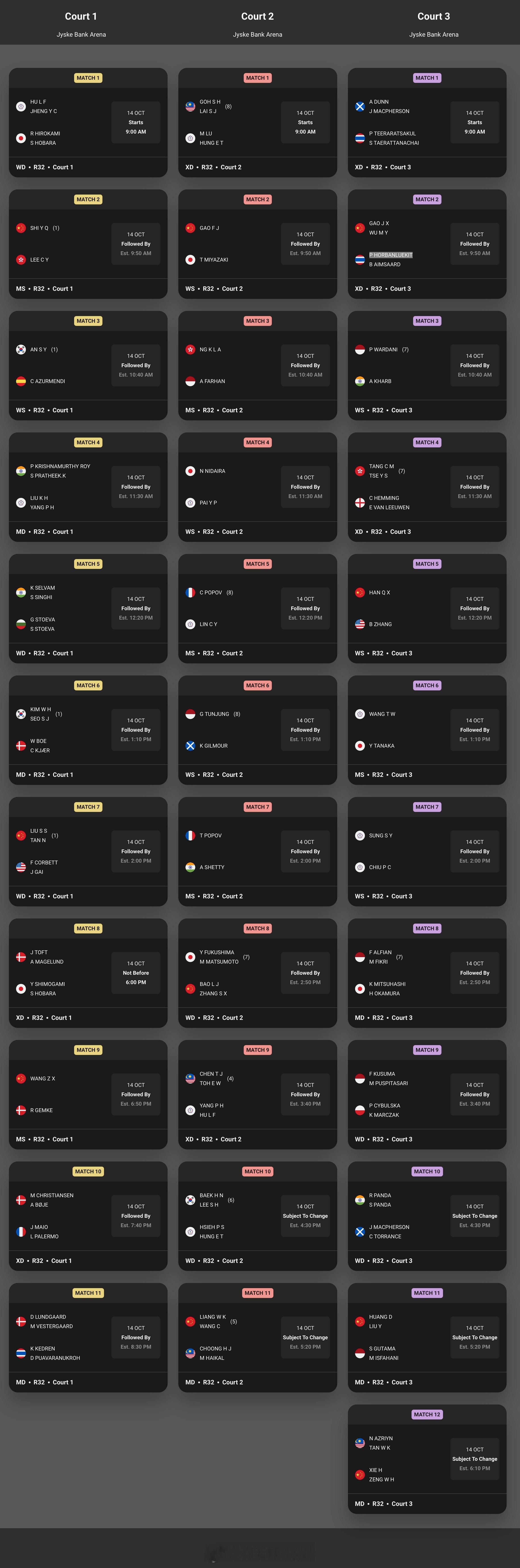 2025年丹麦羽毛球公开赛 10月14日第一轮国羽对阵: