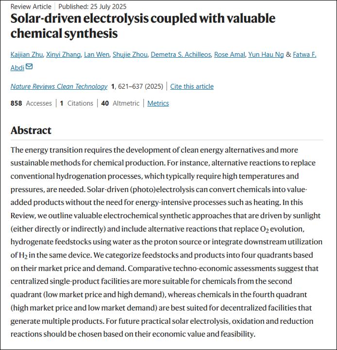 香港城市大学的新突破给绿氢能源产业带来新的希望吗? 绿氢或许有一天能够为一些最难实现去碳化的行业提供一种清洁能源解决方案。氢气可以在高温下燃烧,其方式类似于煤炭或发动机燃料,但燃烧时不会排放温室气体,而是只会留下水蒸气。这使得它在清理诸如钢铁制造和交通运输等难以减排的行业方面变得不可或缺。 但绿氢的成本过高,若不通过在生产及应用方面进行重大技术改进,可能永远都无法成为具有商业可行性的选择。去年,哈佛大学的一项研究指出,如果将包括存储和向终端用户运输在内的整个生命周期成本都计算在内,绿色能源的成本可能会比之前估计的还要高。事实上,他们得出的结论是,绿氢的成本如此之高,以至于更明智的做法是将时间和精力以及资金投入到其他绿色化替代方案上,而非继续朝着商业化的绿氢发展。 该研究的首席作者罗萨娜·沙菲伊(她是哈佛大学环境中心的一名博士后研究员)在接受《哈佛公报》的采访时表示,“即便生产成本能如预期降低,存储和运输成本仍会使氢气在许多领域无法实现成本优势。我们的研究结果对“氢气将成为脱碳的万能工具”这种日益盛行的观点提出了挑战,即并且表明氢气的机会可能比之前认为的要少。” 因此,曾经盛极一时的绿氢能源热潮已大不如前。2023 年,计划中的绿氢能源项目实际完成的不到十分之一,这表明绿氢能源的雄心壮志与实际实施之间存在着显著且不断扩大的差距。这并不意味着绿色氢能源是徒劳无功的,只是意味着我们在应用时需要更加精简高效。今年早些时候,Oilprice 报道称:“多年来失败和半失败的氢能源项目向我们表明,虽然燃料储备并非解决温室气体排放的万能药,但某些应用如果能大规模推广,仍具有巨大的潜力。” 基于这种对氢气脱碳潜力的精细考量,香港城市大学的研究人员取得的一项新突破或许找到了一种方法,能够通过优化其在化学工业中的应用,使太阳能制氢成为一种具有商业可行性的选择。在最近发表于《自然·清洁技术》杂志的一篇文章中,研究人员设想了一种利用阳光不仅生产绿氢,还能同时生产高价值化学品的系统。 据Tech Xplore网的一篇报道,该评论认为,在太阳能电解系统中引入高价值的化学合成技术,能够将这一产业从亏损的项目转变为具有经济吸引力的行业。这些化学产物能够为化学工业、制药业、交通运输业和室内应用提供可持续的原材料来源。 香港城市大学能源与环境学院的法瓦·阿布迪教授表示:“这不仅仅是制造清洁氢气的问题,更是要制造出有盈利性的氢气。因为当将太阳能电解技术转化为化学反应器时,整个系统就能实现自我盈利。” 这不仅对绿色氢能源来说是一大胜利,对化工行业而言也是一场重大的胜利。该行业一直以来都是能源消耗大户,且会产生大量温室气体排放。“我们所提议的是一个更加清洁的化工行业,它不仅能减少排放,还能保持经济上的可行性,”阿布迪说道。“对于那些廉价且需求量大的化学产品,大型集中式的单一产品工厂是合理的选择。但对于昂贵的特殊化学品,分布式的生产设施能更好地实现多种产品的生产,”他接着解释道。 这一潜在的突破目前仍处于概念阶段,但对重振日渐式微的绿氢能源计划至关重要。它表明,绿氢能源在某些领域仍是一种具有变革潜力的工具——但并非在所有领域都是如此。在许多应用中,直接利用清洁能源而非将其用于生产绿氢能源,仍是利用可再生能源的最合理和负责任的方式。但我们可以期待在诸如香港城市大学发现的化学工艺等多样化的难以减排的领域会有更多的突破,从而证明绿氢能源并非毫无希望。