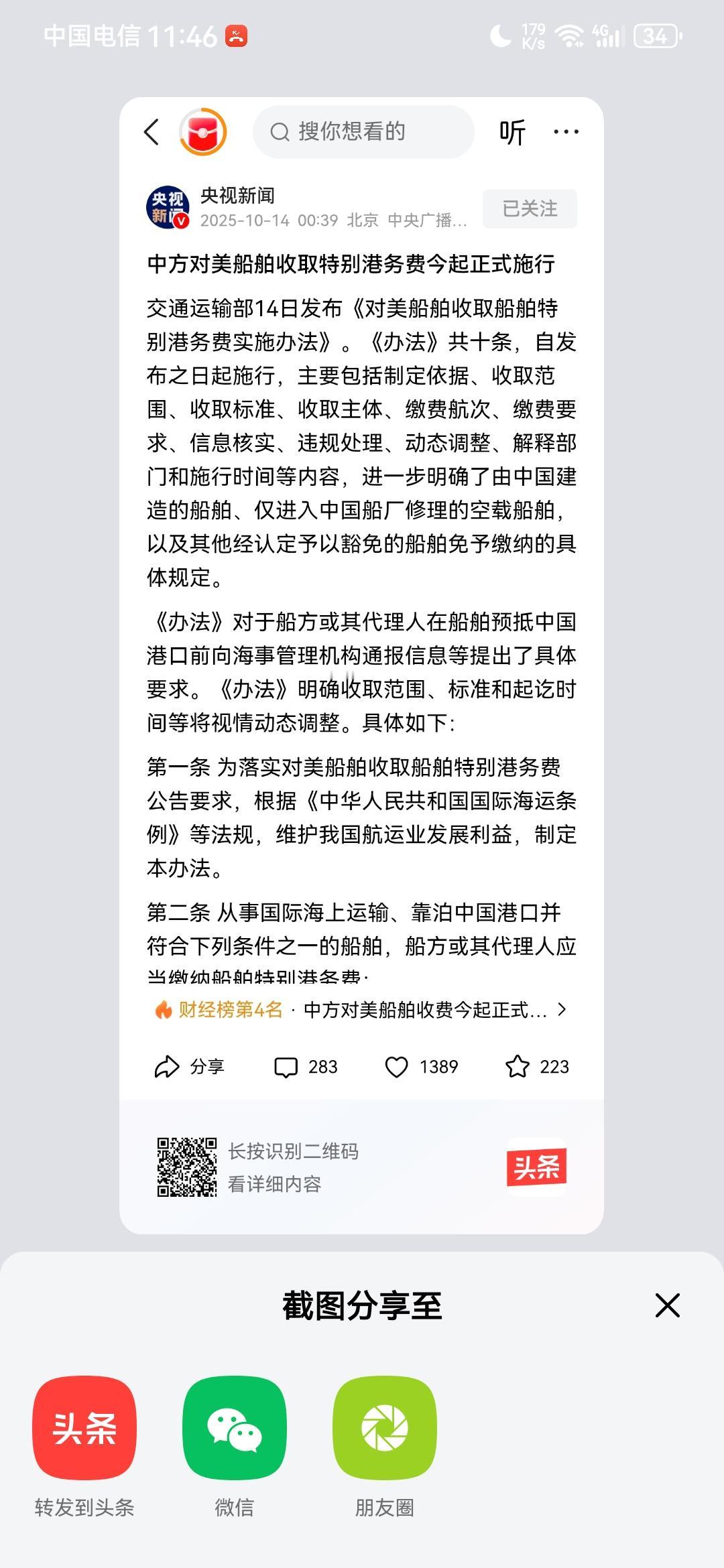 太强了!我仔细阅读了交通运输部在10月14日发布的《对美船舶收取船舶特别港务费实