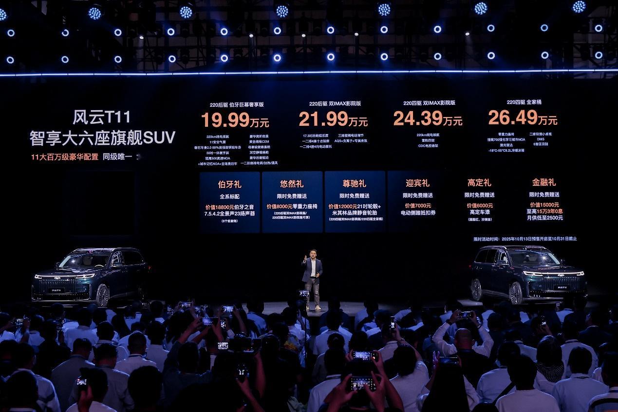 奇瑞的豪华大六座风云T11正式开启预售了,一共4个版本,预售价19.99万元起步,顶配的220四驱全家桶版26.49万元封顶。