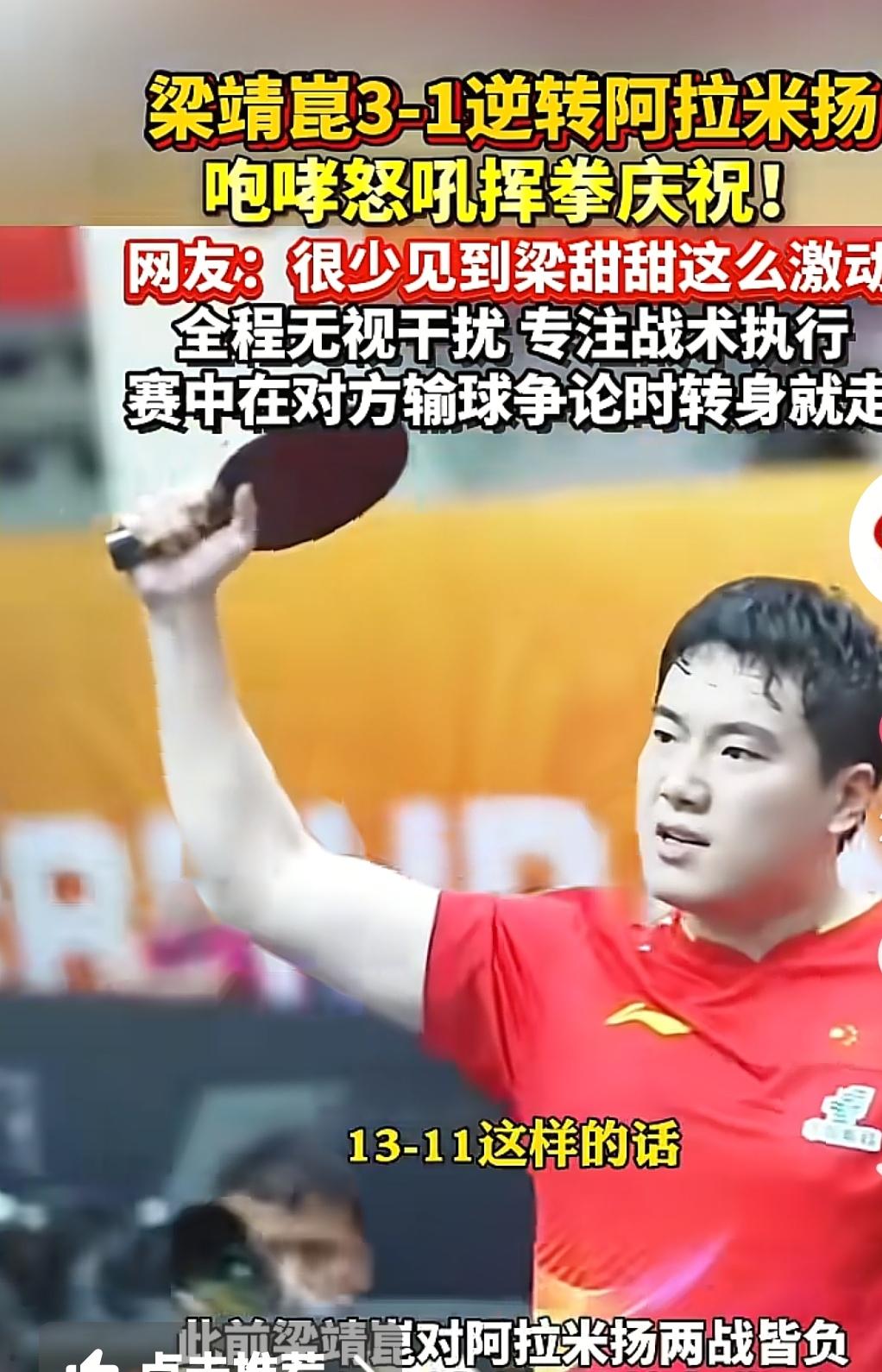 不知道大家发现了没有? 没有哪个队员和他一样, 无论输赢, 大家好像都坦然接受还对他喜爱有加。 梁靖崑确实是国乒队员的例外。 非常像《天龙八部》里的段誉, 出身世家, 没有太大的野心, 因为减肥打乒乓球撞进了国家队, 不能说武功盖世, 但也属于顶尖高手, 有时候绝世武功“六脉神剑”时灵时不灵, 当马龙,樊振东,王楚钦都参与时, 他的目标不是夺冠, 是不输外战, 为国乒夺冠铺路, 是夺冠路上的一块砖, 当他们仨都发挥失利或有一两个发挥失误时, 关键时刻他能顶上去, 六脉神剑又应用自如。 输了,大家不虚此行, 大多是打到决胜局, 票绝不会白买, 赢了,也让观众看的胆战心惊, 大多是逆风翻盘, 这个闲散靖王虽然不是那么抢眼, 但从不让人失望。 印度亚锦赛, 在一单林诗栋失利时, 先失一局, 以大比分3:1战胜伊朗一哥, 为国乒拿下第一分, 好样的,大胖。