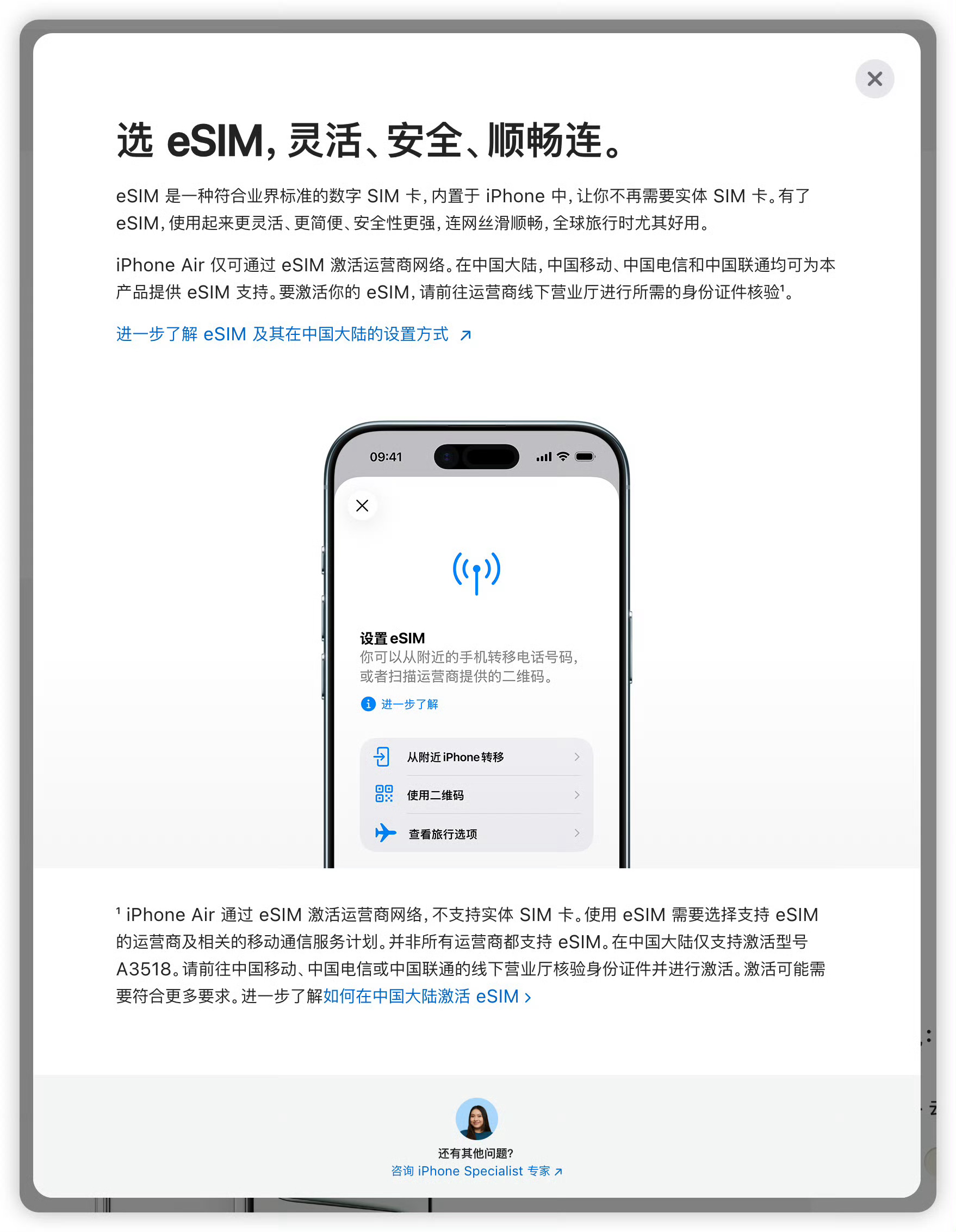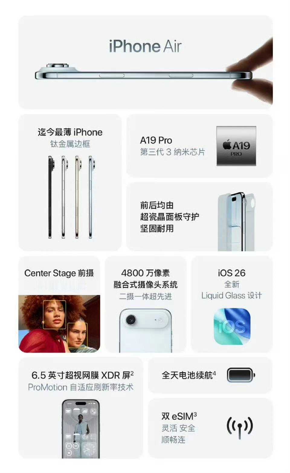 苹果官网确认iPhoneAir非合约机无合约机+全运营商eSIM,兼顾自由度和全