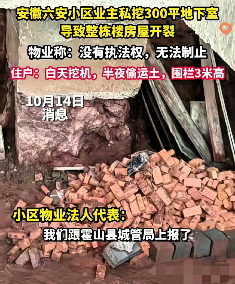 “安徽业主私挖300平地下室致32户开裂”,这哪是装修?分明是拿整栋楼的人命当赌