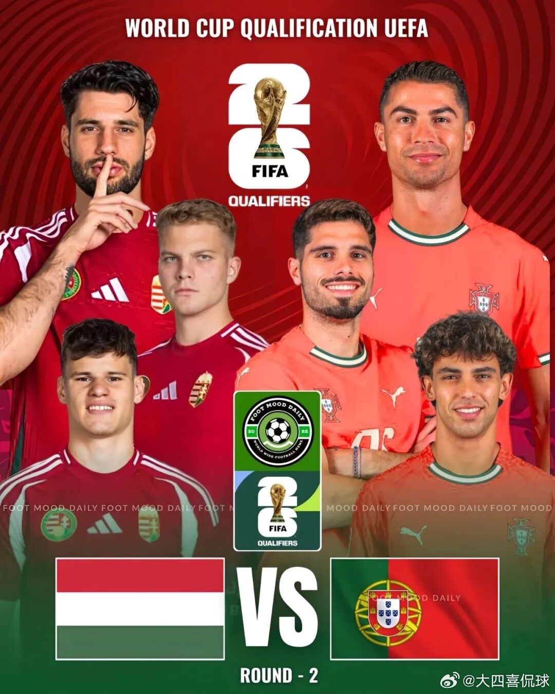 历史交锋近5次交手葡萄牙4胜1平保持不败,最近一次是2025年9月世预赛客场3-2险胜匈牙利。匈牙利上一次击败葡萄牙要追溯到1972年。